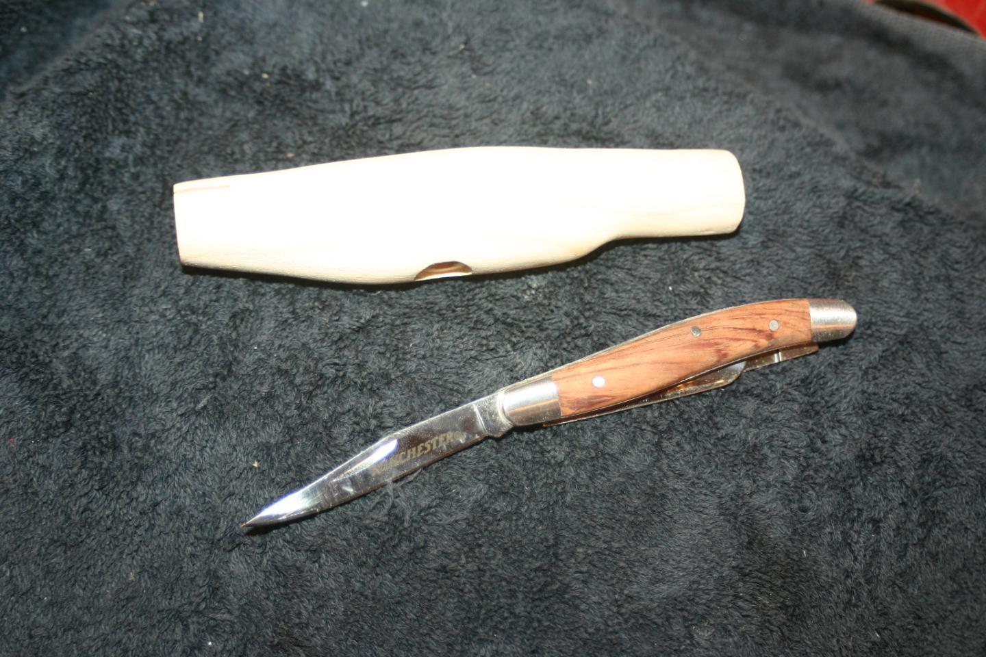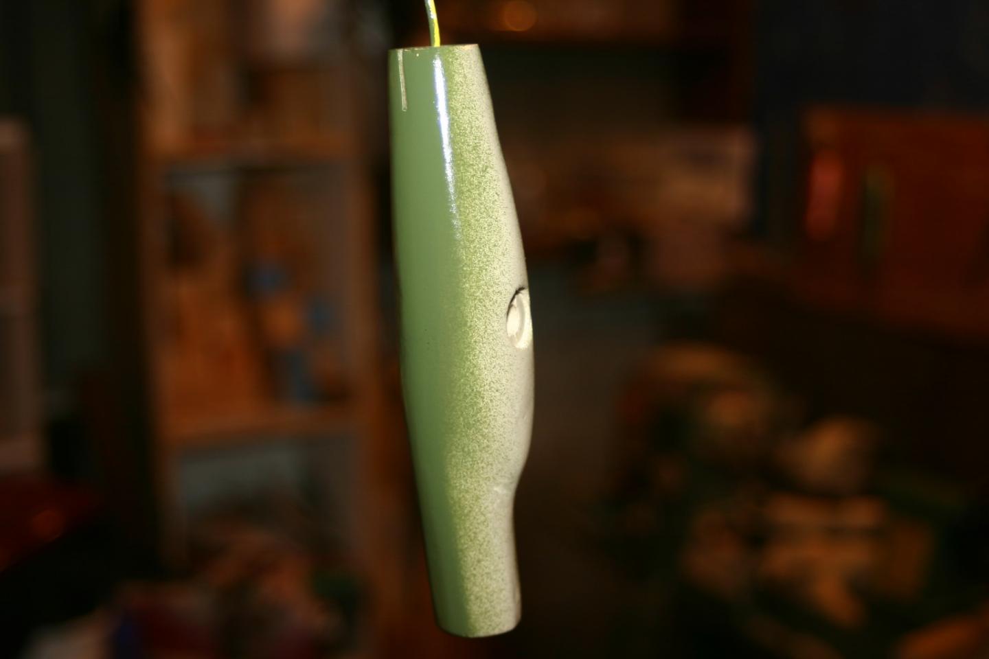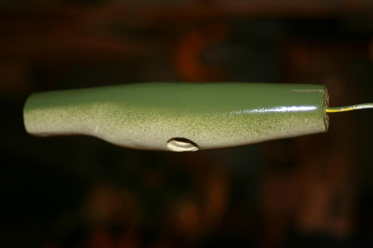 My eight year old son went with me the other day to Mike Thomas' house to go over some plug stuff. When we got home he bugged me to build his own plug. Seeing as though he has been working on his whiddling badge in Cub Scouts I gave him a block of pine and told him to have a ball. He sat in the shop with me and carved away with his pocket knife while I worked. An hour later he asked if I could drill this for him. WOW....he carved a plug!!! I Drilled it and he is now painting it all by him self. He wants to know if there is a youth class at Plugfest? I told him he can bring it but I doubt theres a class for him. I can't wait for him to start turning.
