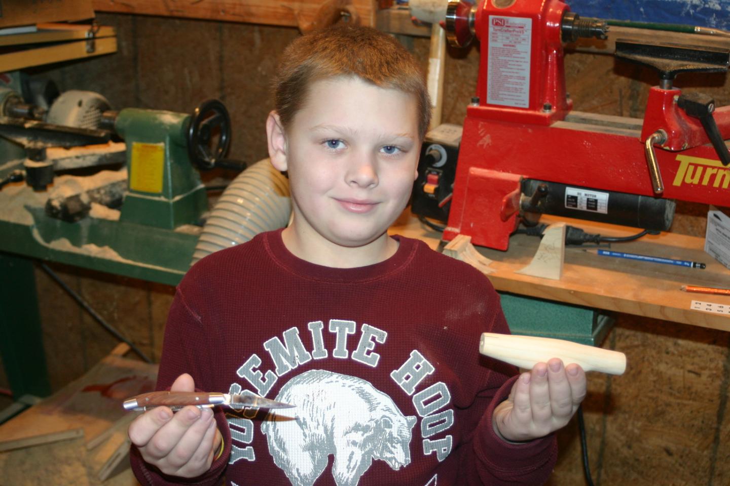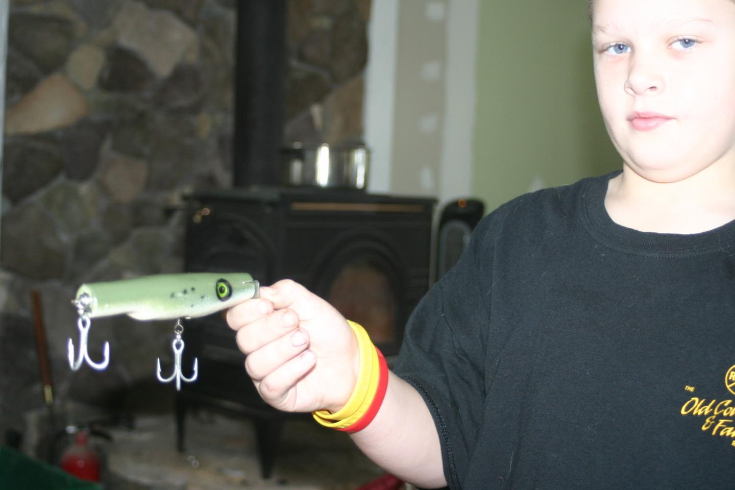 Nothing will beat that feeling once he catches a fish on his own plug, never mind a hand carved!!