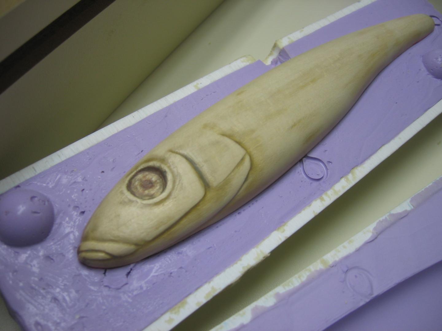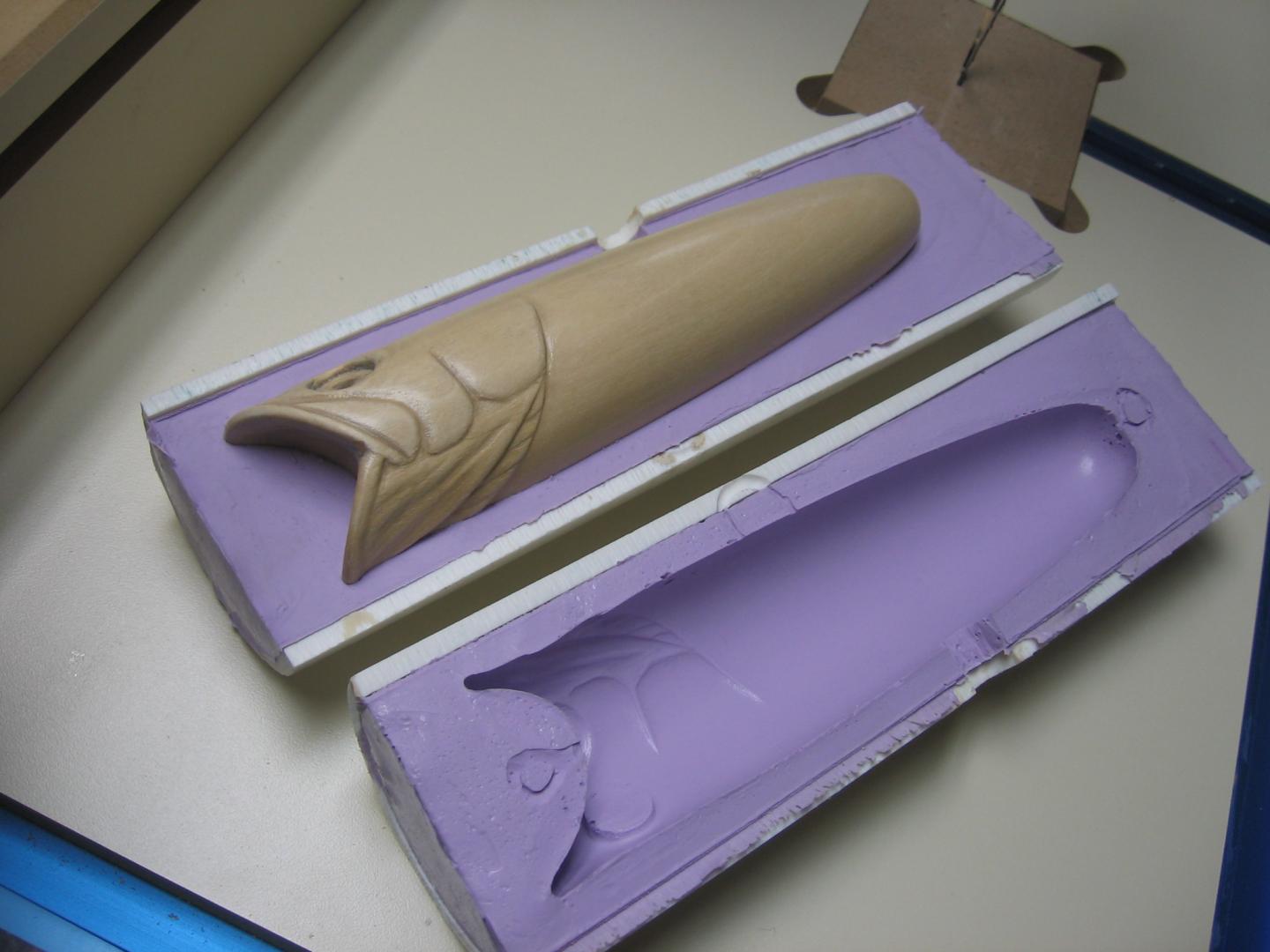 Here is the process I've used to make solid resin copies of original hand carved pieces. I had chosen to do a two piece mold so I could mold in a thru-wire and ballast. I started to write out the process and it got lengthy to say the least, so here is a condensed version with pictures.