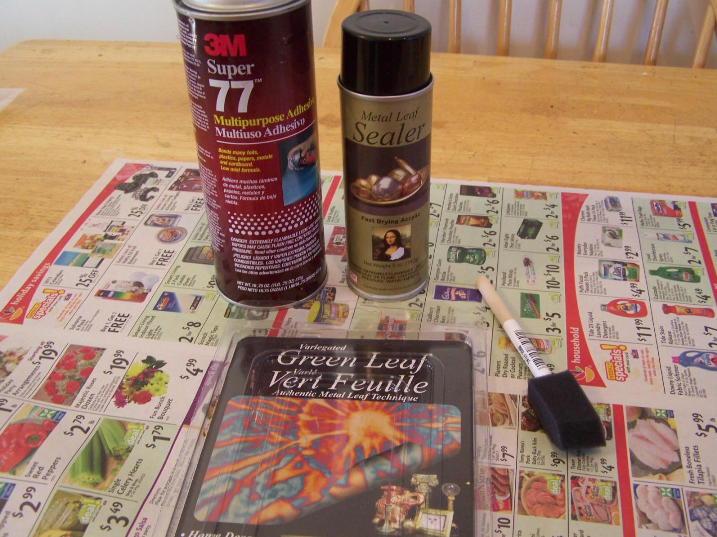 Gather all materials, and put down newspaper or placemat. On Top of that put a paper plate, this will be used to catch all the excess and flake leaf.