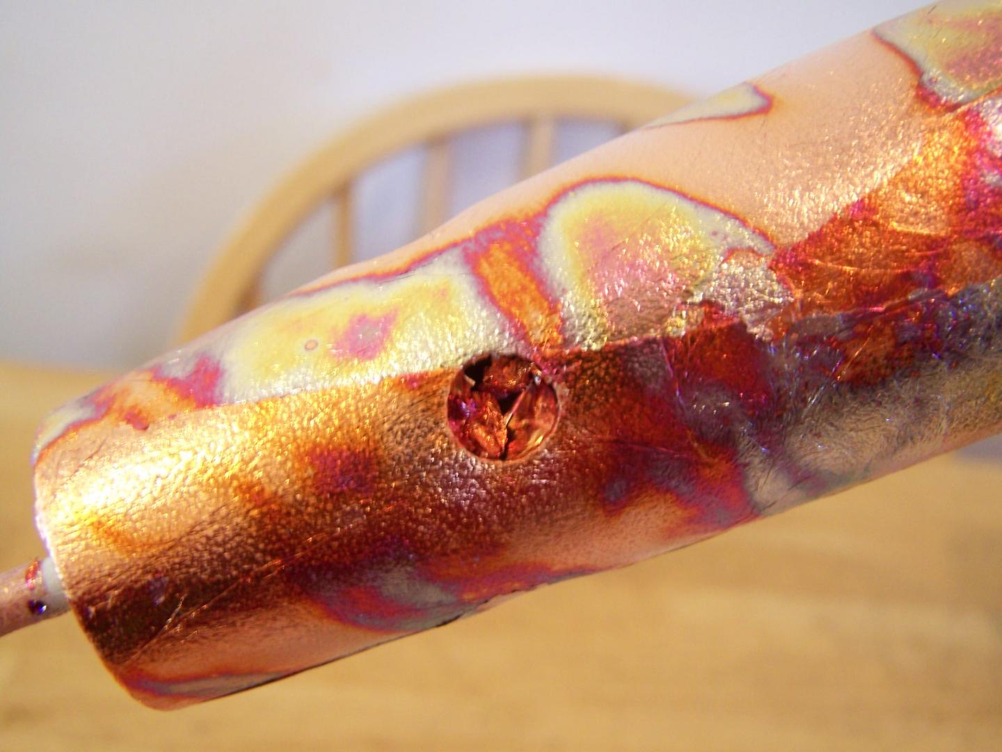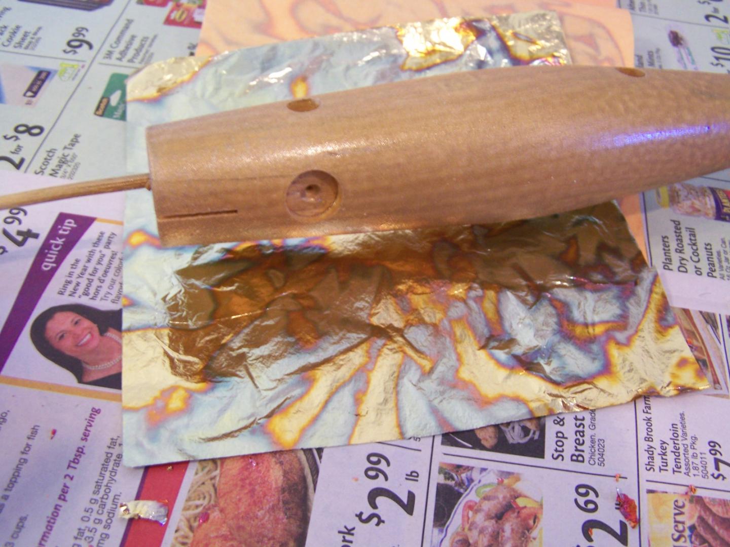 Now if you need to a piece to cover the belly if the leaf was too short, use an excess piece from the rubbings, making sure gloss side is facing you. Gently the piece fall onto the plug and slowly rub it down just like the other pieces, again where the seams are will rub away from itself and you will have a clean seam.