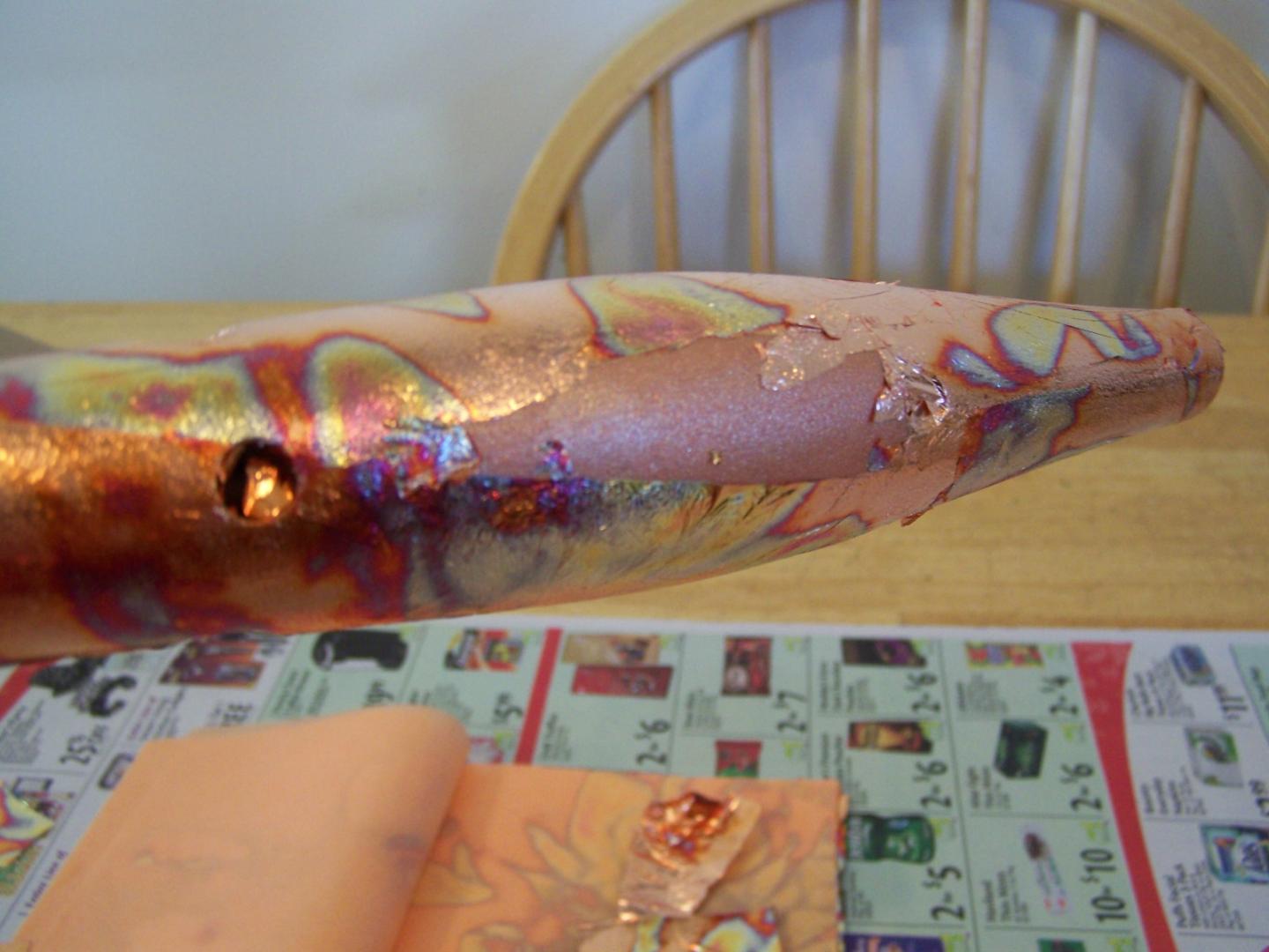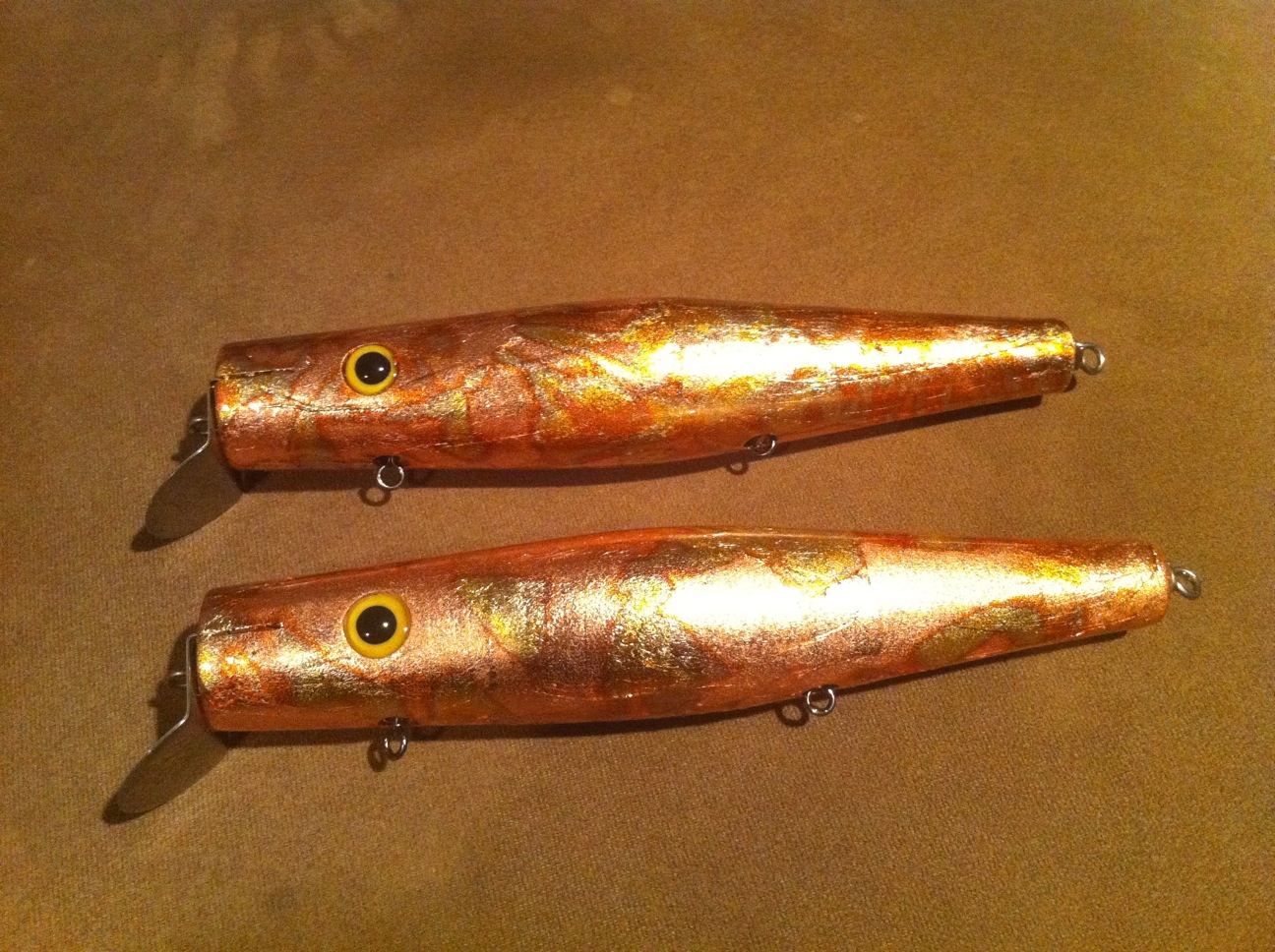Start with a sealed plug, I paint my plugs copper, gold or yellow for two reasons, 1 if you rub thru the leaf the painted body will hide mistakes, 2 it makes the leaf really pop and gives more depth of colors. Give the plug a light sand with a sanding sponge.