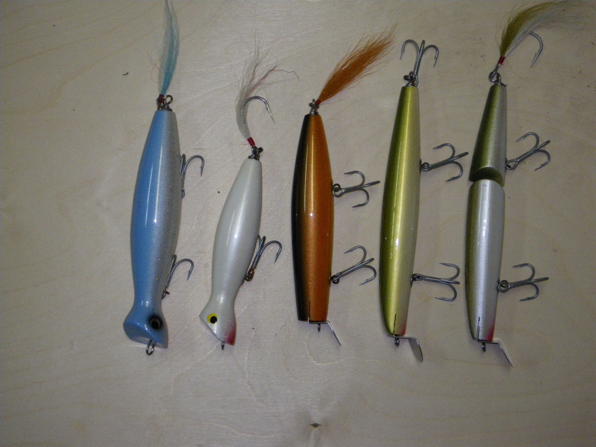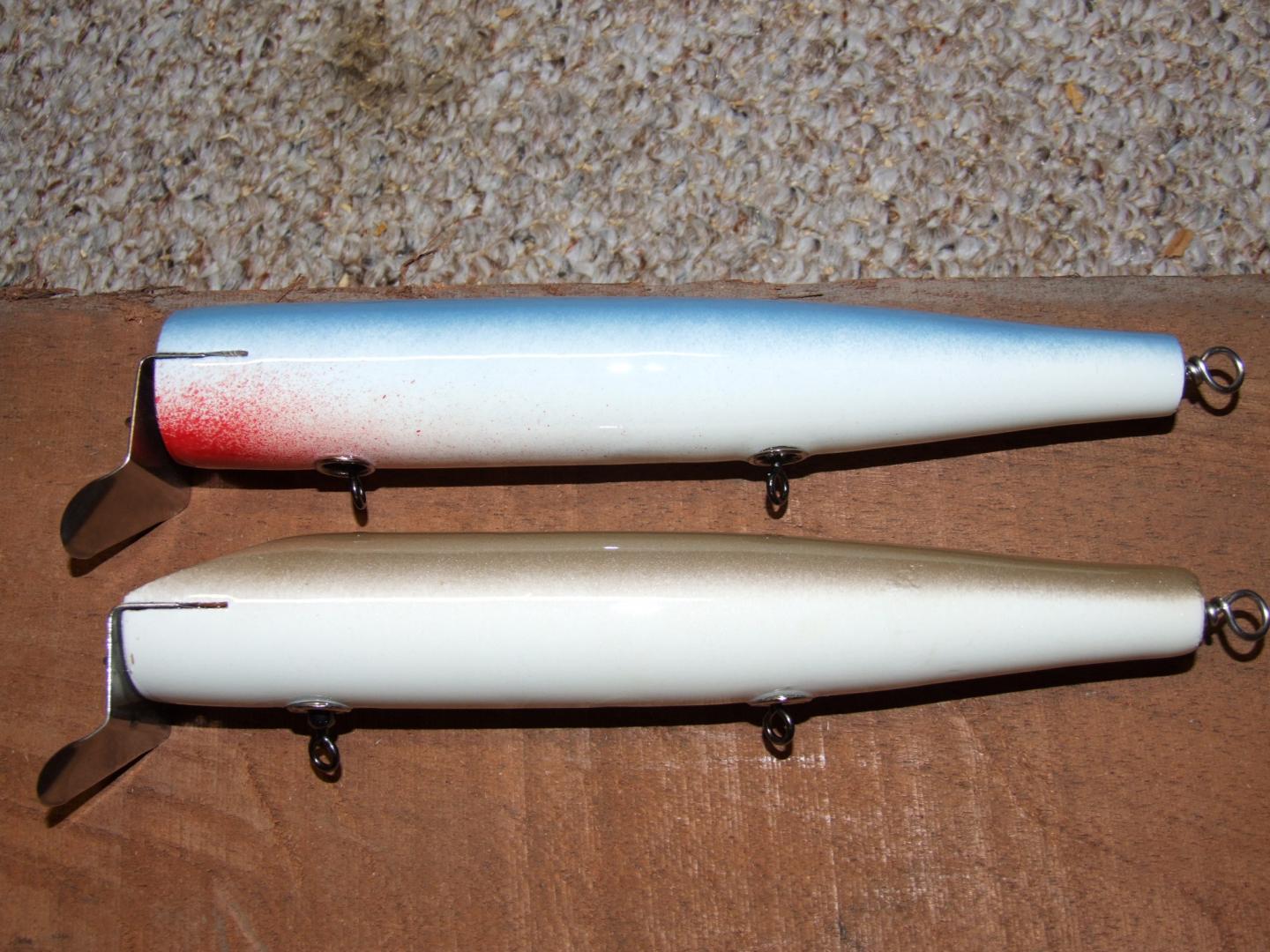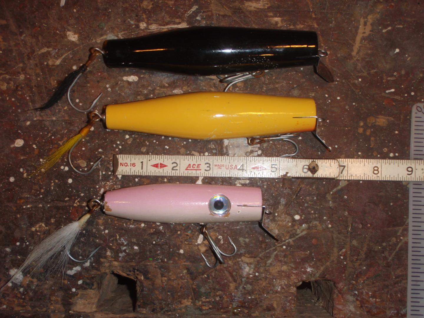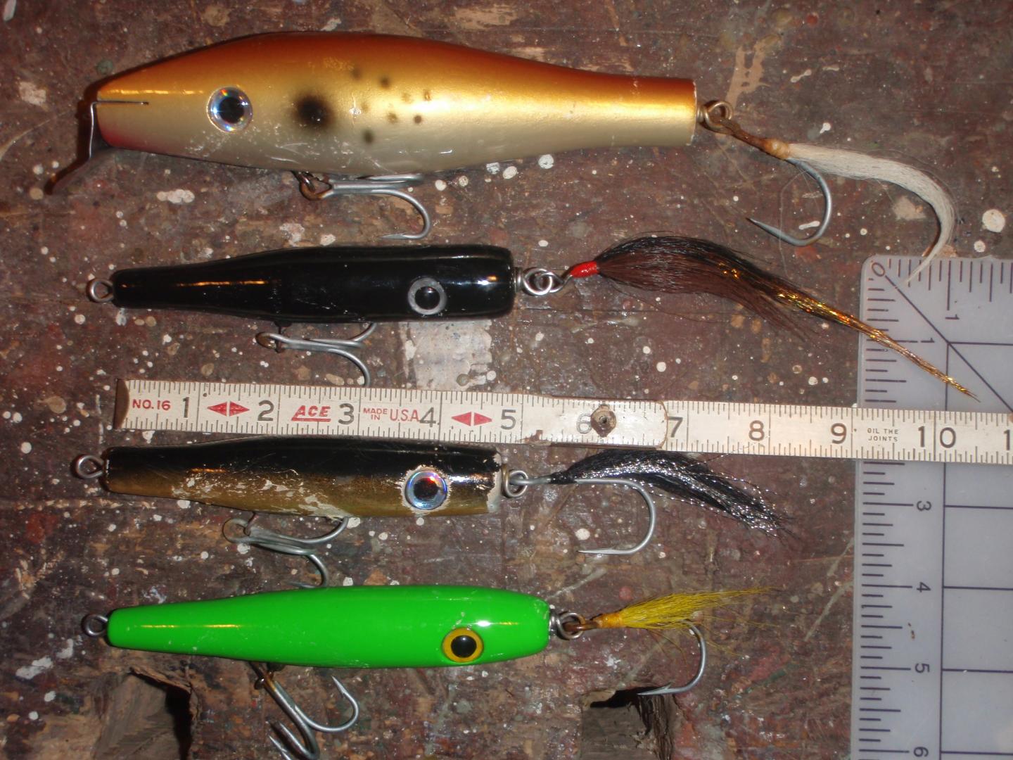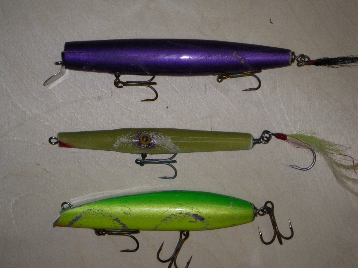 These are three plugs feel like my right arm to me. All have taken at least several fish better than 35lbs for me. The middle is Eddy's needle, the darter a Musso copy, and the purple swimmer one of my skinny donnys. These are as dependable as plugs get.