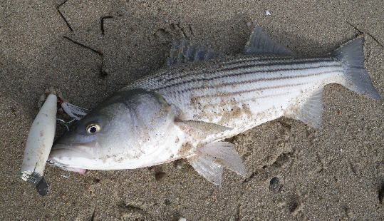 I didnt fish plugs as much this season... when I did it was spooks and small ( 6") dannys.. mostly in June in the river, day break highs ...for the most part this year they were fusy little @*&%^%$ and wanted meat... September brought some hungry fish that keyed in on sand eels on the beach ( when the wind allowed) .. that thin Pinkney ispired sand eel was hot for the second year in a row... I need to make more, i gave away most, my second to last trip found large (high twenty to low 30lb) bass hanging behind the moored sail boats on the drop, the trick was to cast the plug tight to the stern, you knew with in 3 casts weather they were there or to move to the next boat, well one particular fish streaked off running up current. in and out of the "fleet" of moored boats... a managed to free her from a few of them, but in the end.. she swims with my last sand eel plug...