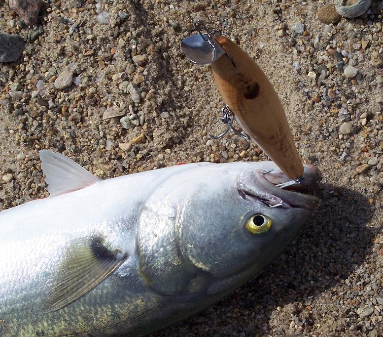 Here are a few pics of early "Prey" testing! Naked plug, no paint, no eyes.....just testing the action! I was pounding fish in the 10-15 pound range all afternoon this day......bass and blues! I was pleased with the action, the fish seemed to like them as they were literally following the plug in and attacking with massive strikes! I was laughing like a school girl I was so happy with them! So paint came next and I continued testing them with the fish!  I fished that naked "Prey" all afternoon......no colors and no paint! This might go to show you that the paint is indeed (in many instances) for the fishermen! The fish as I have always believed are interested in the action of the plug a high percentage of the time!