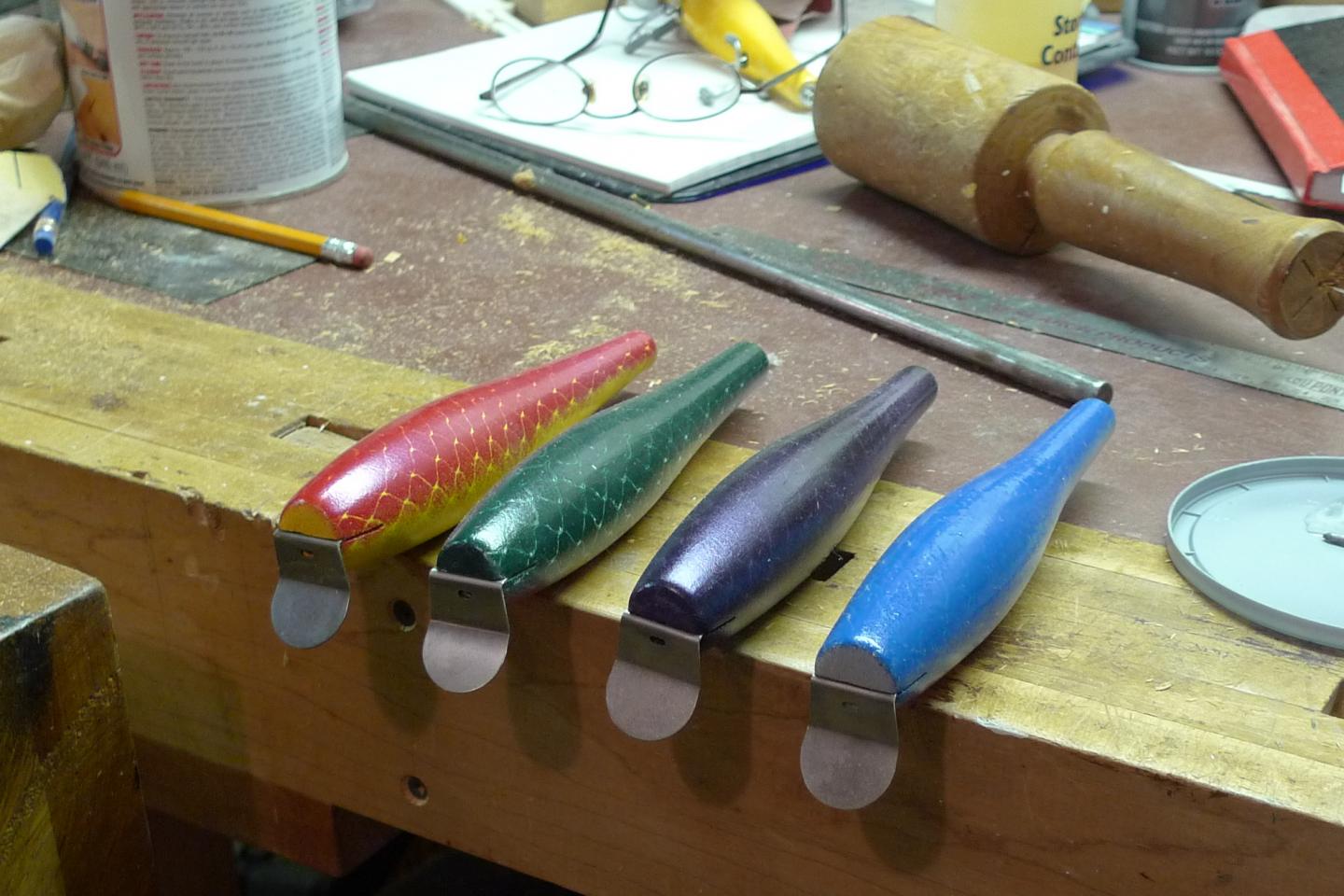 I traded with WoodyCT at Plugfest for a sweet gold G2 Skinny that he made this winter. I had to clone his clone so I can perpetuate this great design. These are now ready to thru wire and then etex tonight can't wait to try them from my yak in BH in May/June