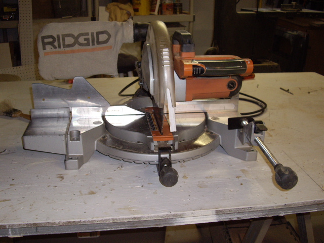 Rigid 10" miter saw.The Repeat-A-Cut fence can be marked for repetitive cuts, and the sliding left fence supports taller material. The saw features an extended capacity of 0 - 48 degrees of bevel and 0 - 47 degrees of mitre range. This was mounted on a bench in rear of shop, so has seen light use. I have four others, so this is available. $100.00