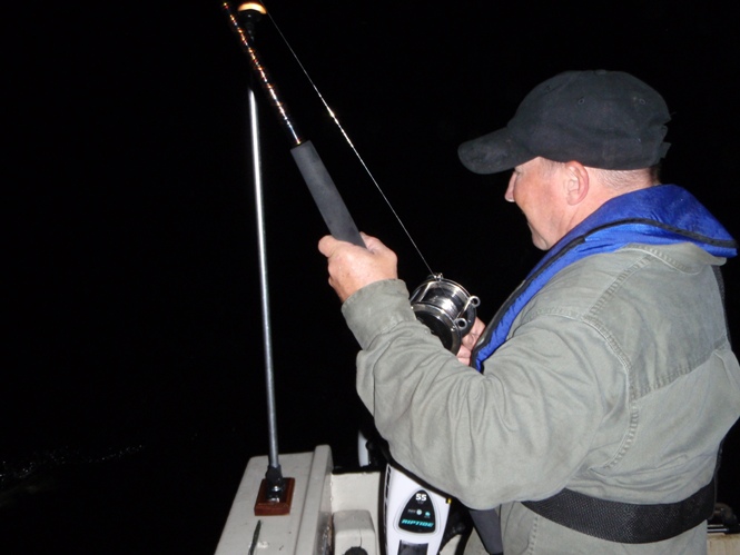 I normaly wouldnot have had the pictures, as most nights I fish alone, I've met a hard fishing, younger fisherman( Night shift) that has earned my respect... I'm showing him a few things that have been lost in the last generation or so...in exchange, all I've asked for is to be taken on the water when I'm too senile or crippled to go myself...