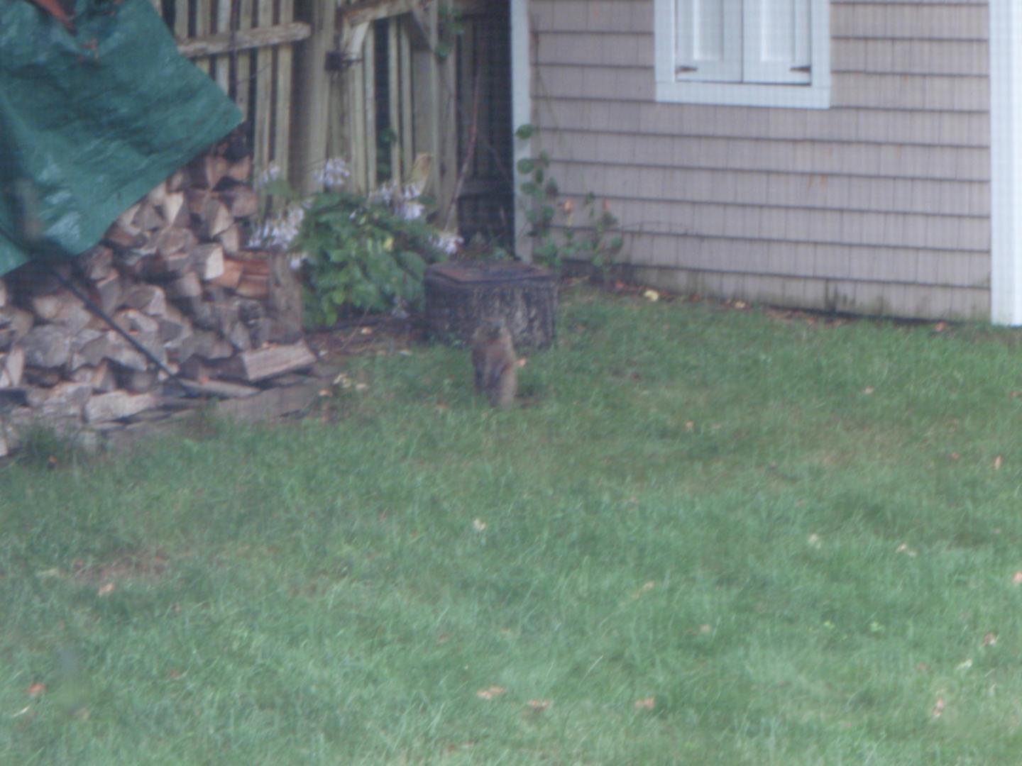 what's going on here??/I look out the window after typing last post and he's out there just hanging out in the yard? I took a couple photos
