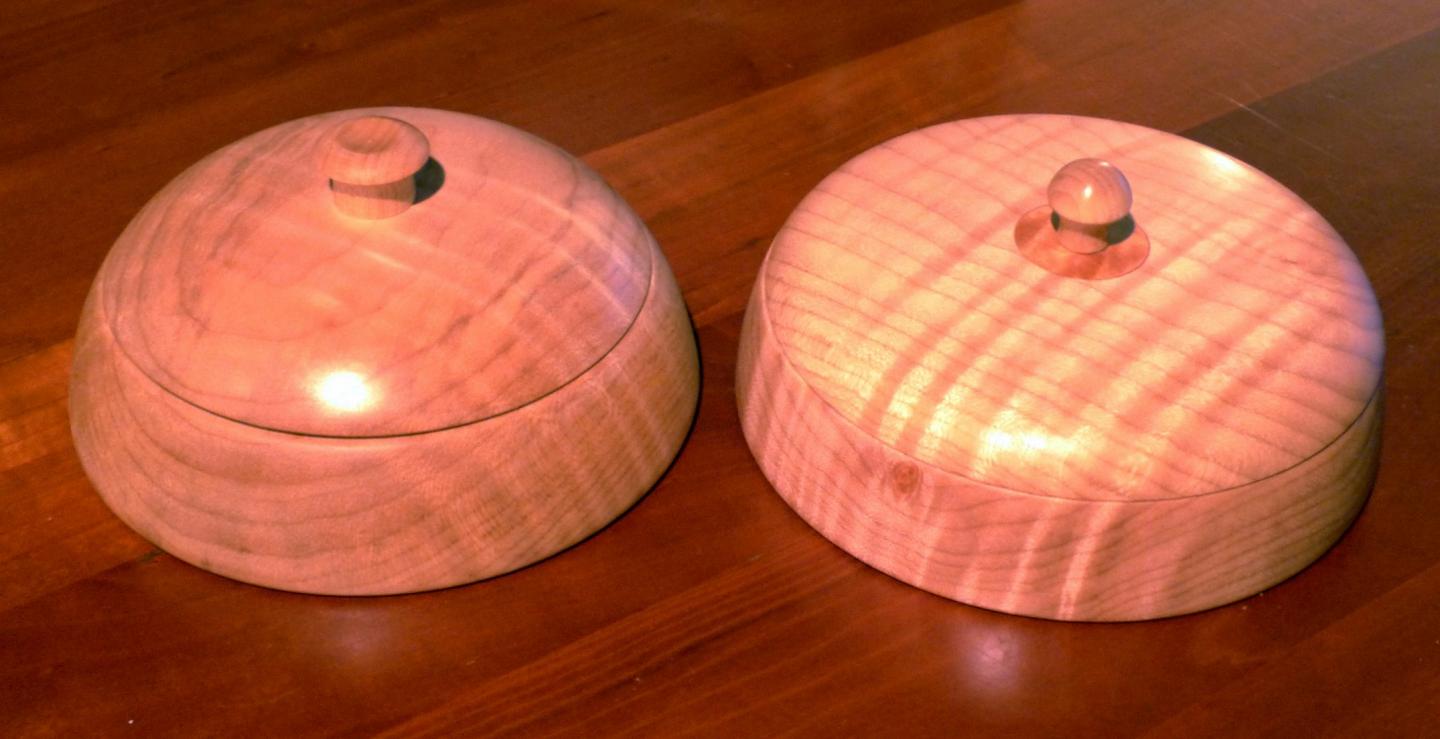 Maple turned bowls "courtesy of Irene"... must come to my booth to seen the amazing shimmering grain pattern on the inside of these butter smooth babies