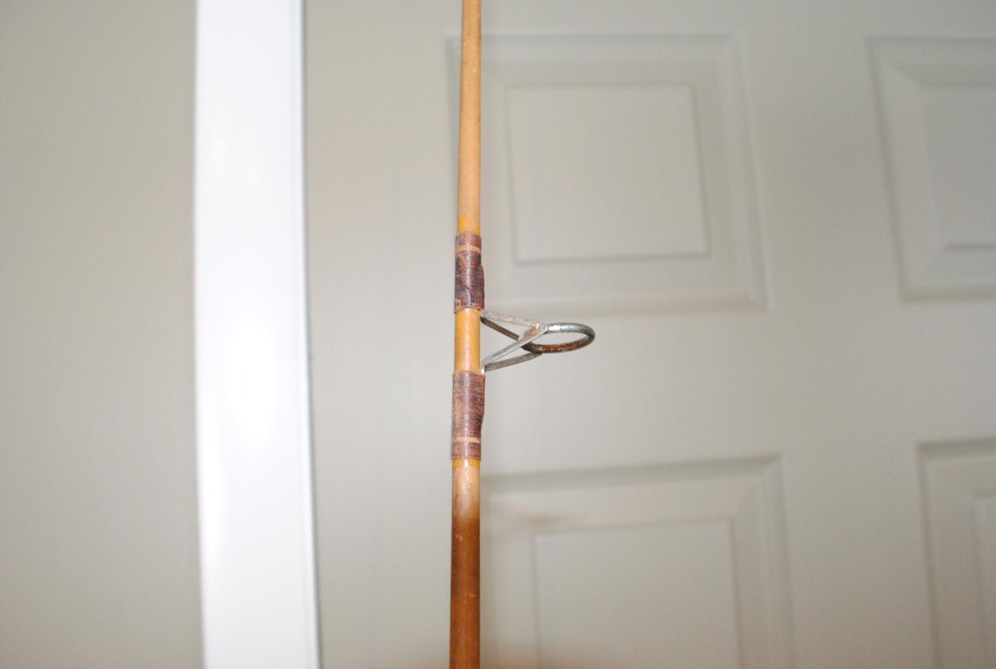 picked up a very old rod my grandfather used to use 60 or 70 years ago. i think it's a freshwater rod. metal guides in rough shape, cork handle looks good, metal reel seat looks good. the blank is in good shape, but not sure what kind of material (graphite/ fiberglass) it is or how it's rated.