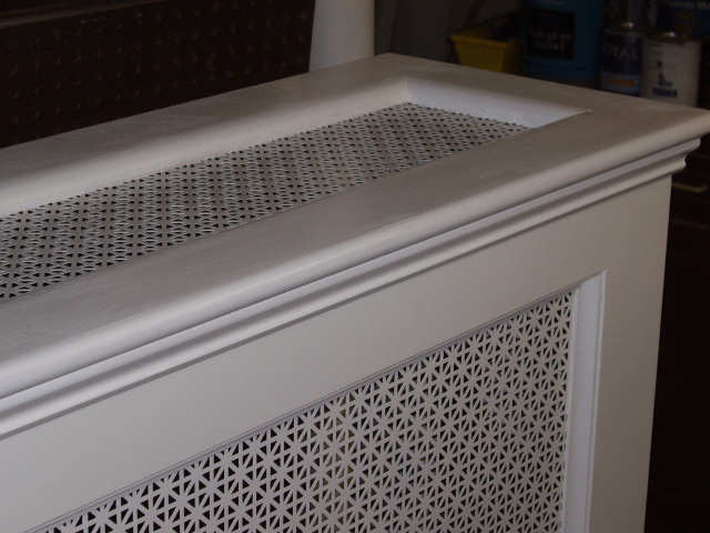 1x4 at the top. Cover lifts off as she keeps water pans on the radiators for humidfying.