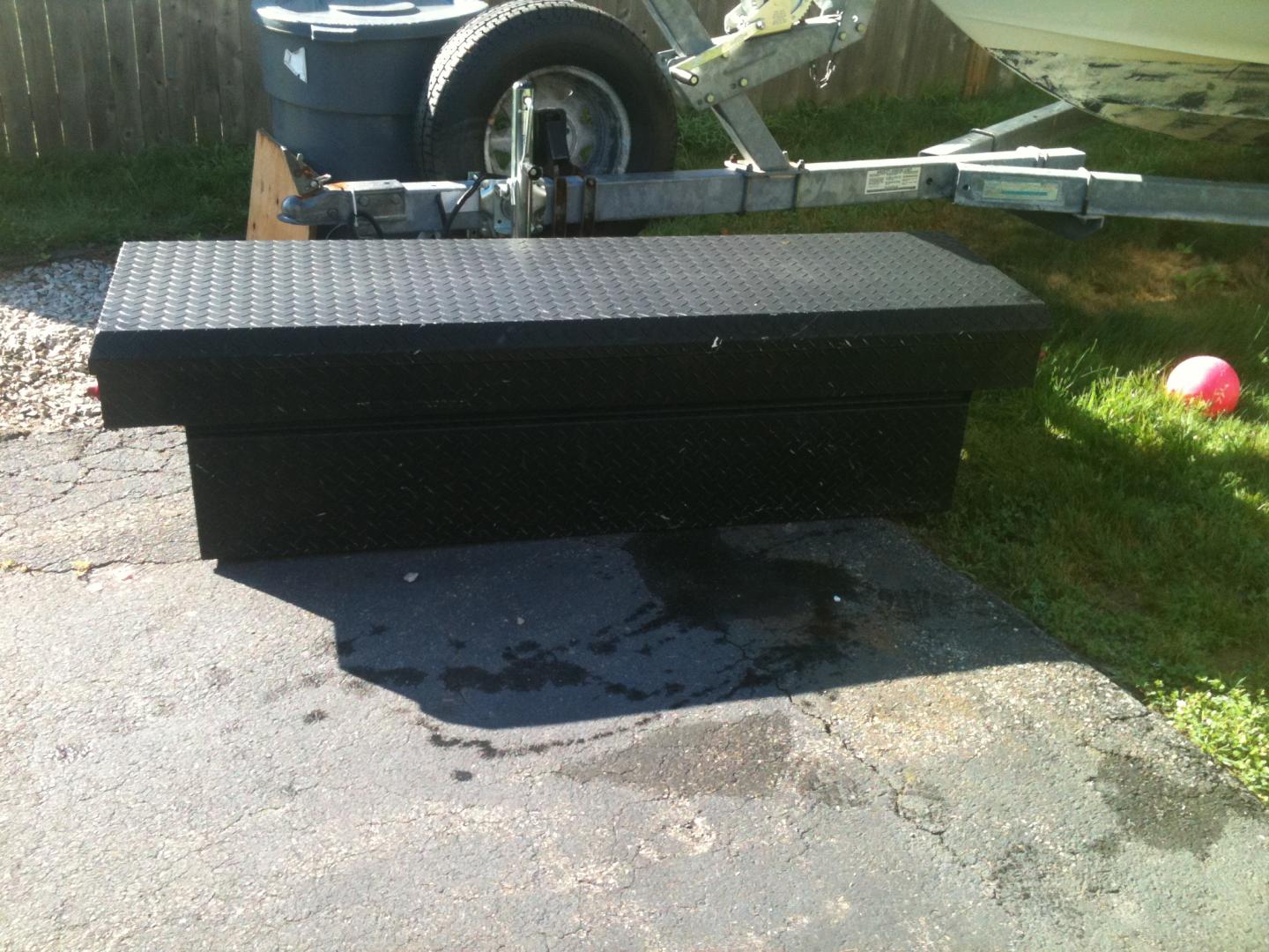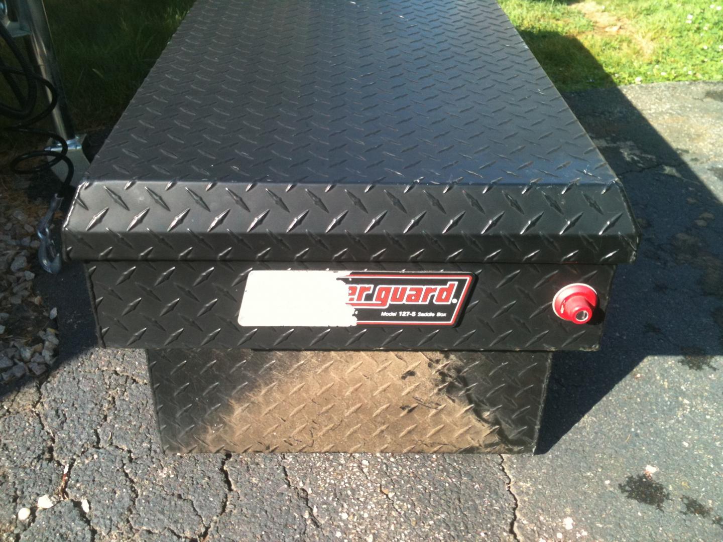 weathergaurd around 10 yrs old. has locks and keys. works great. lots of scratches but no dents. $125 - firm on the price.