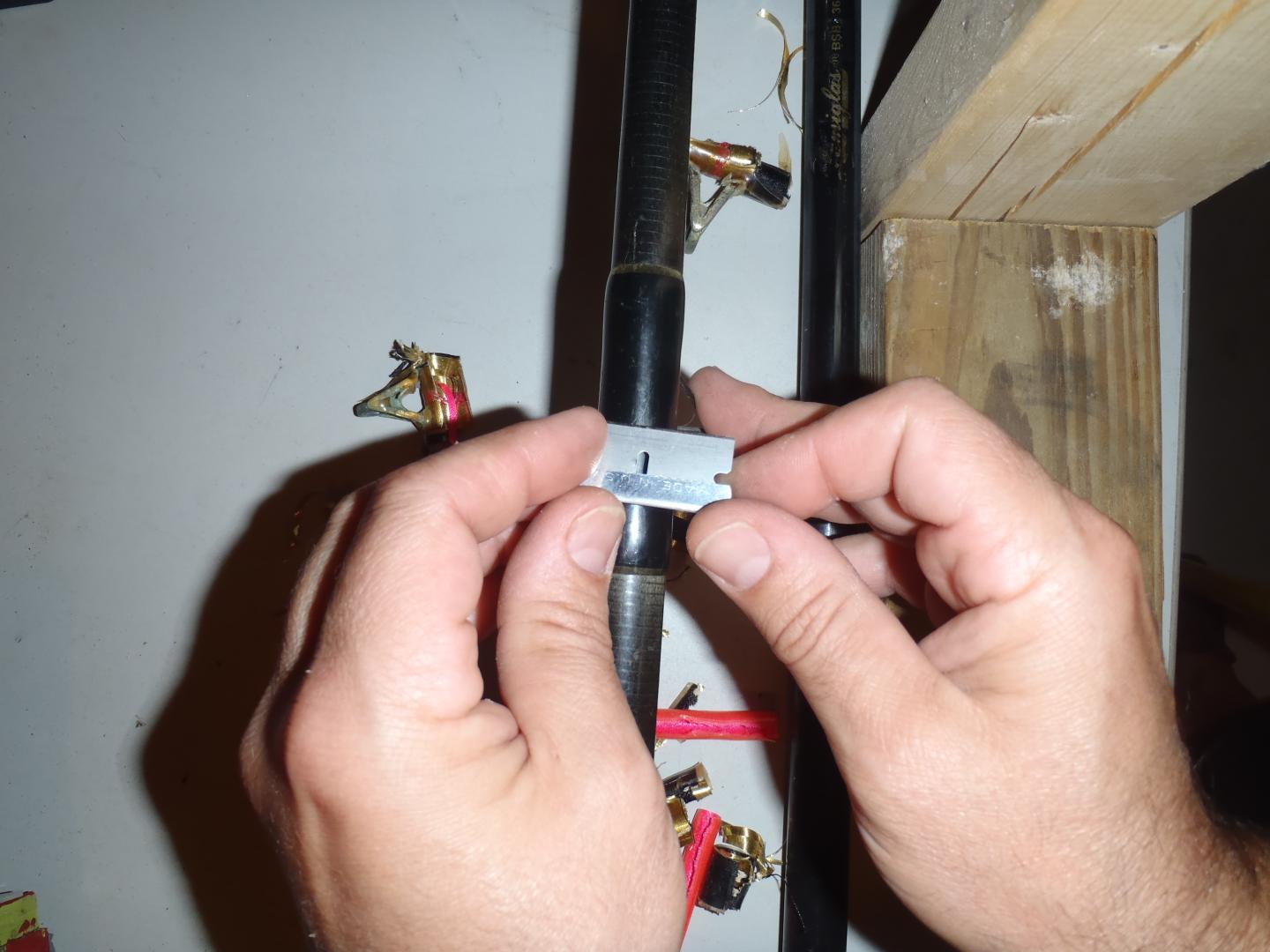 Definitely not as bad as I thought. I first tried to slice along the guide cutting only into the epoxy and not the blank (with the razor standing upright). I wasn't liking it. I couldn't tell how deep I was cutting, not to mention...it was hard as nails. This rod is 20+yrs old.