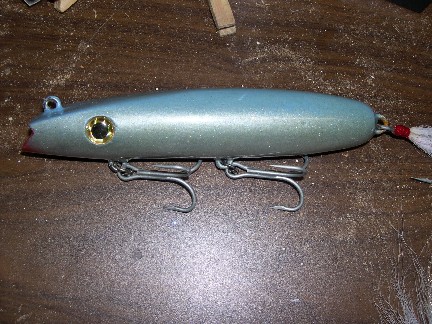 I make a killer darter i simply copied a 3oz wooden musso.made it out of hard maple an it swims pissa.6 inches no weight.i put one up on the MAC auction and should be in the next bunch on SOL.I drill the front line tie hole down an then pick it up from the rear it makes it a pain to wire but after i epoxie it in it never comes loose or pulls up.This is important as many i have seen an fished with come out of tune very easily an don't work well after a few fish.the reason i don't do many is the hard maple is really hard an I'm to lazy to constantly sharpen my tools as they gotta be razor sharp to do the right job.If u wanna see how its done right I suggest u win the bid when the auction comes up.Might sound cockey but i just copied the way another one of the many masters designs an did it the way he did.