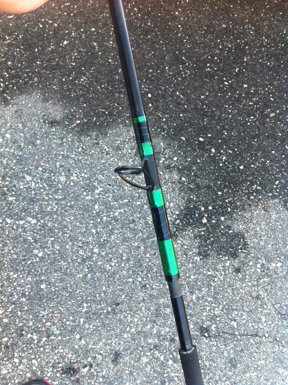saltheart the marbling goes from the end of the eva foregrip to the grip below the ferrule, covers a 14" section of the blank. so in the last pic it goes from where my hand is down to the foam grip