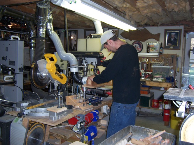 Bumping this up for a reason. I have a father and son coming over who want to build a plug. They have briefly lurked here, but are still thinking they will be going home with a finished plug after spending a morning in my shop..... If you look at the pics, you will notice that Brian is shown wearing three different hats, meaning he made at least three different visits to Joe's shop. Drying time for sealer, paint, and epoxy are the steps that can't be changed. I do have plugs in various stages so they will be able to paint a previously sealed plug, and epoxy a previously painted plug. Today they should be able to take home a plug they have turned and drilled, ready for sealer.