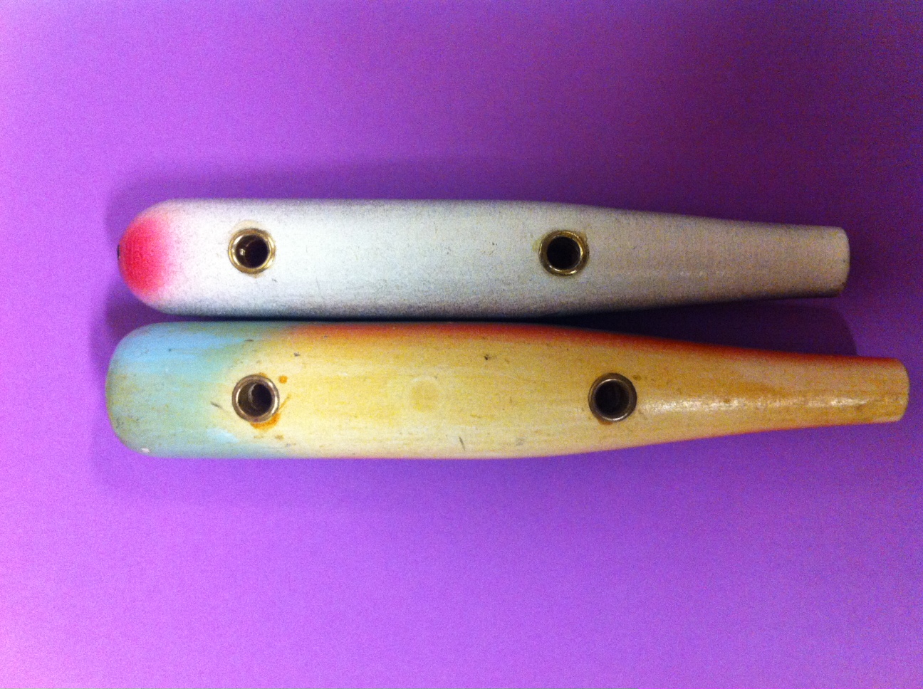 After looking at these plugs over and over you notice cool things, the way he set his belly grommets is neat, looks like he took an awl and banged each end into the body to hold em in place.