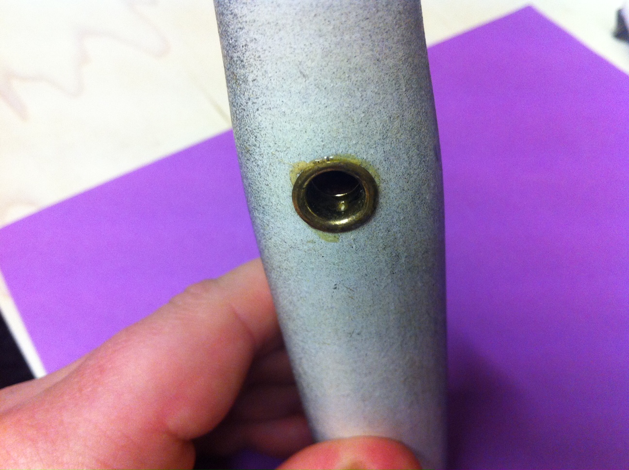 In the last two pics you can see the small hole he made by securing the belly grommets in place.