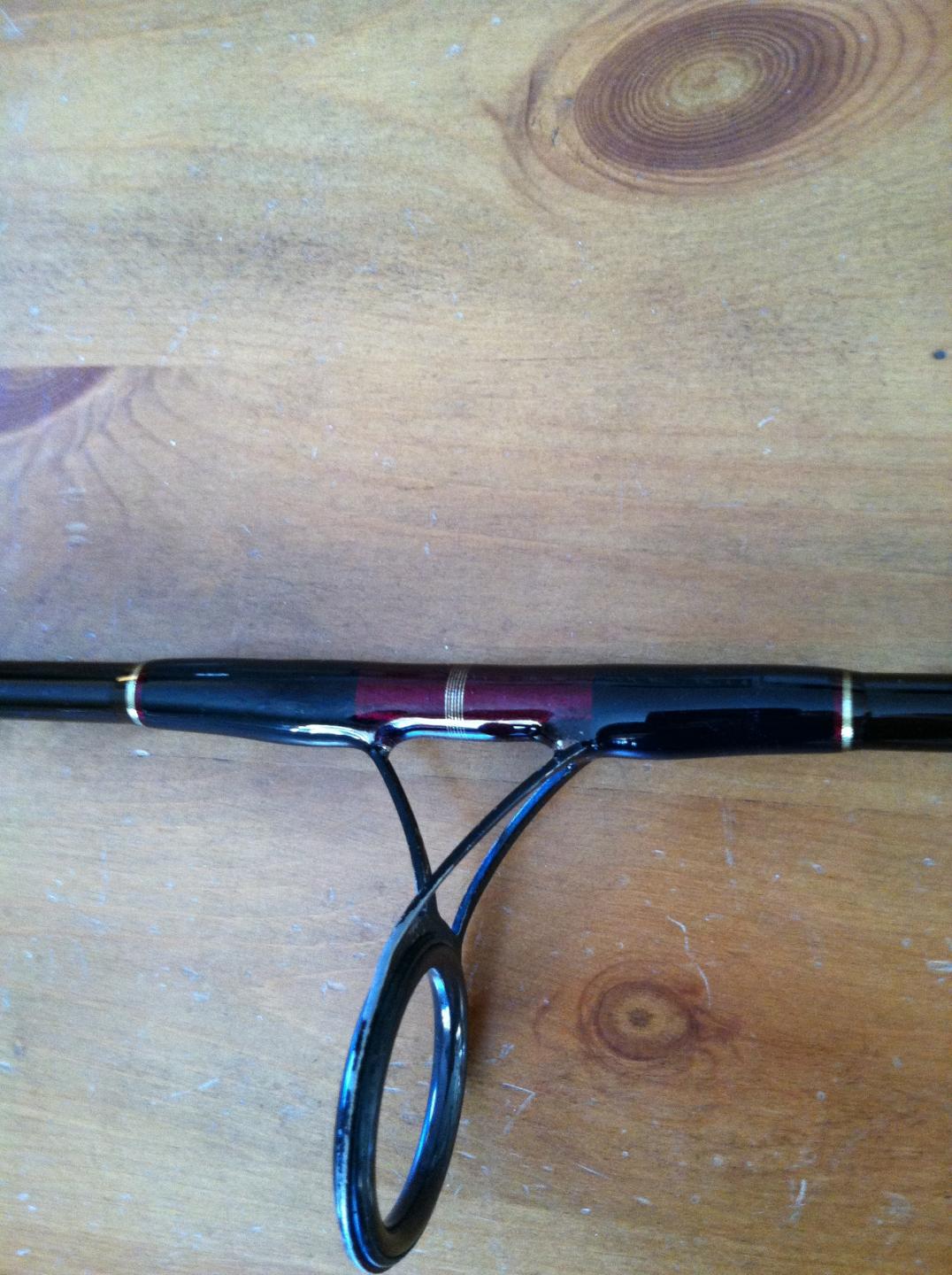This is from the Ron Arra Surf Series line. It was rewrapped by CMS last year on the guides and foregrip with gold accents. All guides are clean and intact, and it has new X-Flock on the butt and foregrip. It has only a few light rock rash scratches on it, and is in excellent condition. The rod is 10 ft and rated for 15-30 line and 1-5 1/2 oz lures. It is a 1 peice rod so shipping is not an option. This is an overall great plugging rod. Im looking for $240.00.