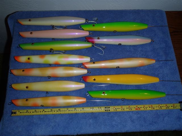 I made a few exact copies of the smaller ones a bunch of years ago.. I would be willing to give up maybe 2 if I can find them. Give you a good deal. I really don't fish them much. Just a thought if you are looking for fishing them and not collecting.