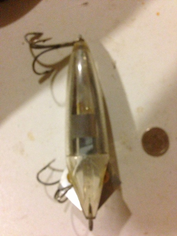 odd plastic swimmer. metal fins on side of the head. i'm guessing its a southern thing, maybe meant for tarpon, but i don't know. action is nothing too impressive. again, found at an antique store for cheap.