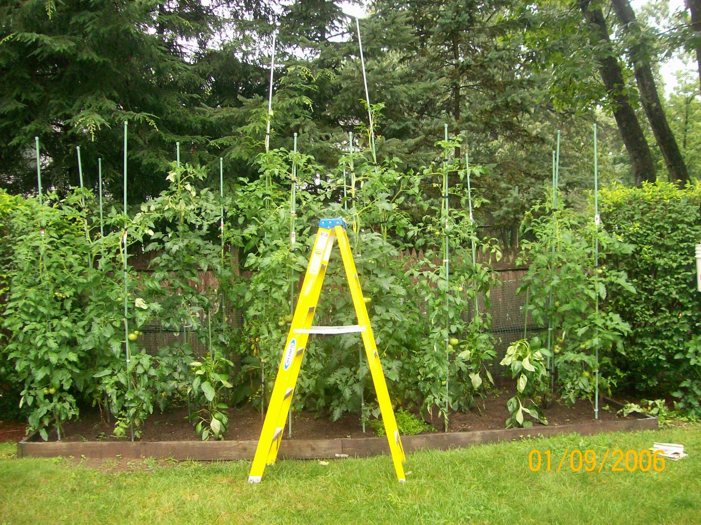 My earthboxes just came in- going to set one up for indeterminates. Early Girl and some kind of Brandywine, probably. For a staking system I'm thinking two 2x2's cut to about 9' and sharpened... Pound them about a foot into the ground on either side of the box, then Florida weave the plants with heavy poly cord as they grow.