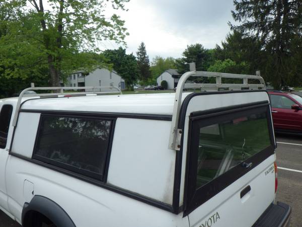 Aluminum truck cap with locking rear window (keys included), sliding front window and crank-out, screened-in side windows. Currently sitting on a 2002 Toyota Tacoma. External measurements of cap are 75.5" x 61" internal measurements are 74" x 55" and should fit most small pick up truck beds. Also includes 4 clamps to attach to pick up truck bed. Located in CT, just north of Hartford. $150 or best offer.