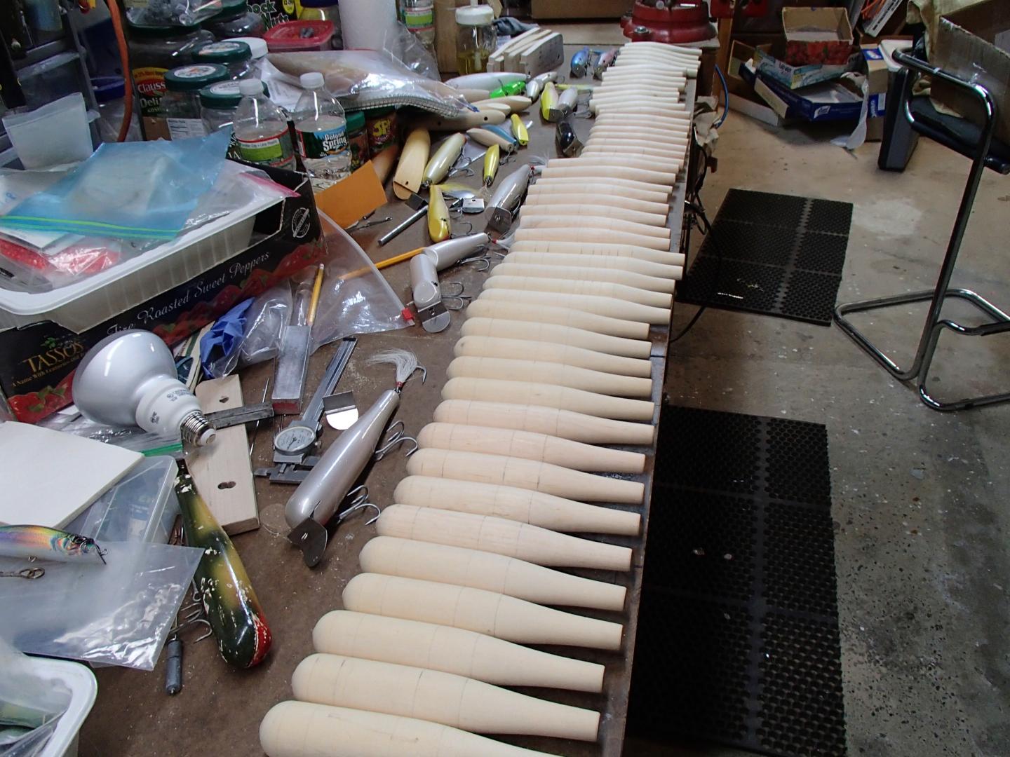 Hey Lawrence. Just got home from Mom in law's. I was busy this past week being off so I had time to do some turning. I too have some A-40's, Bluestreak style. Got some interest from the fish last year on them with George. Actually going to try a few Pichney A-40 Jr.'s too. Some large and med. dannies, some more Lido flaptails, they seem to disappear every year and I have never lost one. Some large and smallish darters and small poppers still to turn and a few med. Gibbs pencils, my best top water plug last year. Oh and a few large jointed Pichney's. For looking at a few bass aquas to finish up, after 3 years, for a friend, some Brad Norris needles and a couple one or two offs for fun. If I finish half of them I'll be happy.