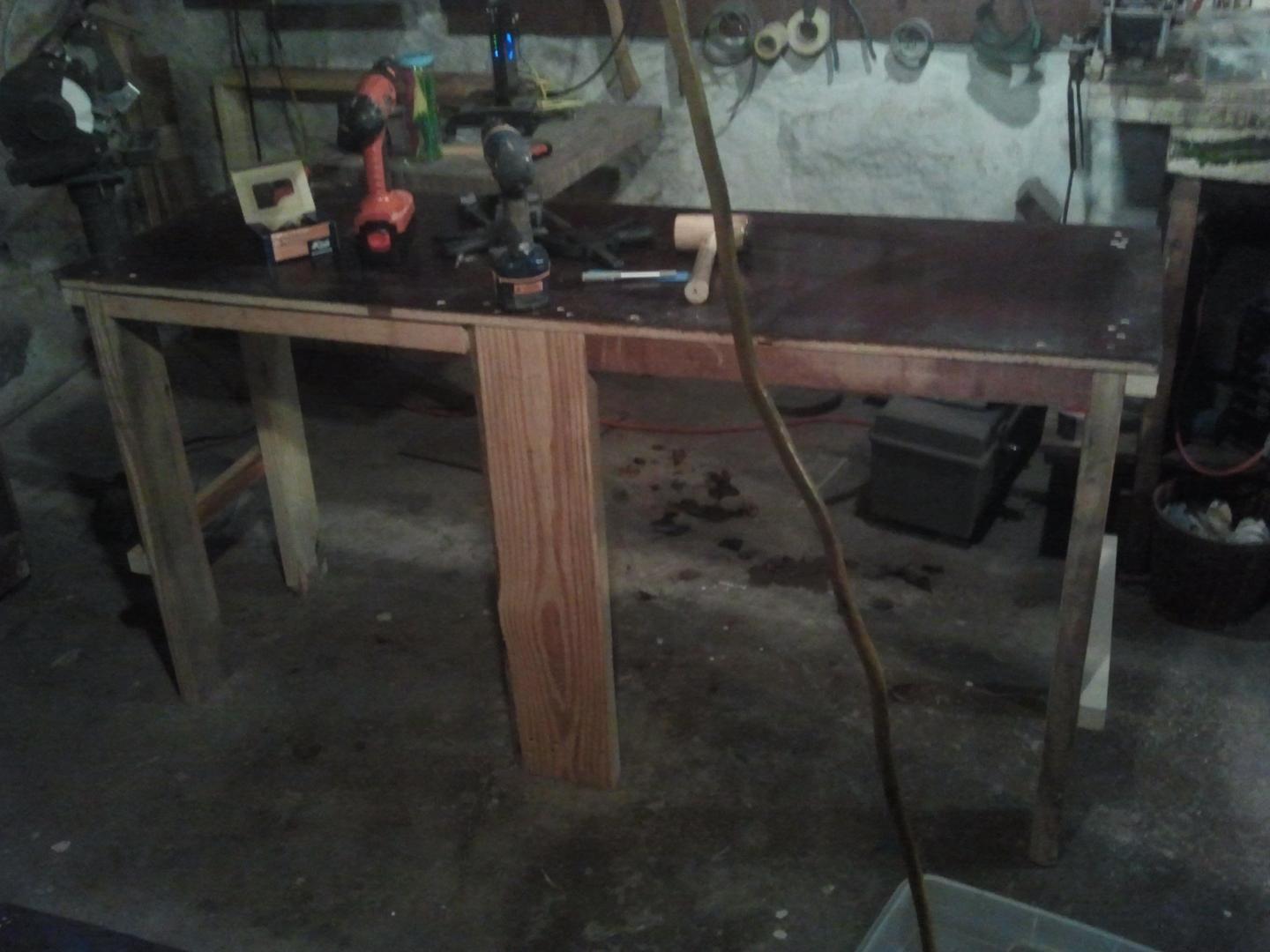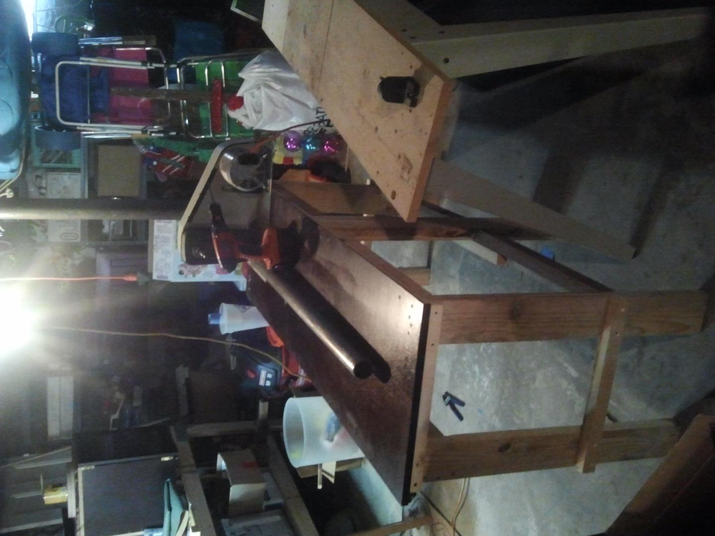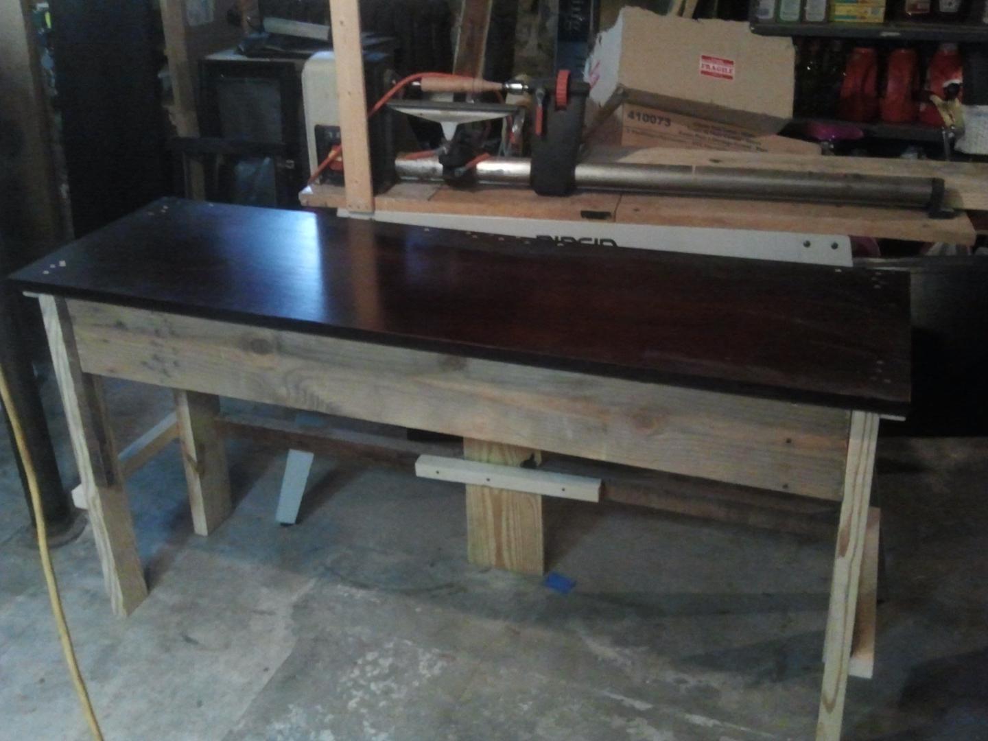 So, I was talking to my lathe....what, like you guys don't talk to your tools...lol. Anyway, decided I wanted a more customizable setup for a lathe table, so I figured I'd build one. But the wife told me no buying anything for it, so everything is scrap from around my shop and shed. The top is from an entertainment unit that I dismantled last month. Anyway, that's all I got.