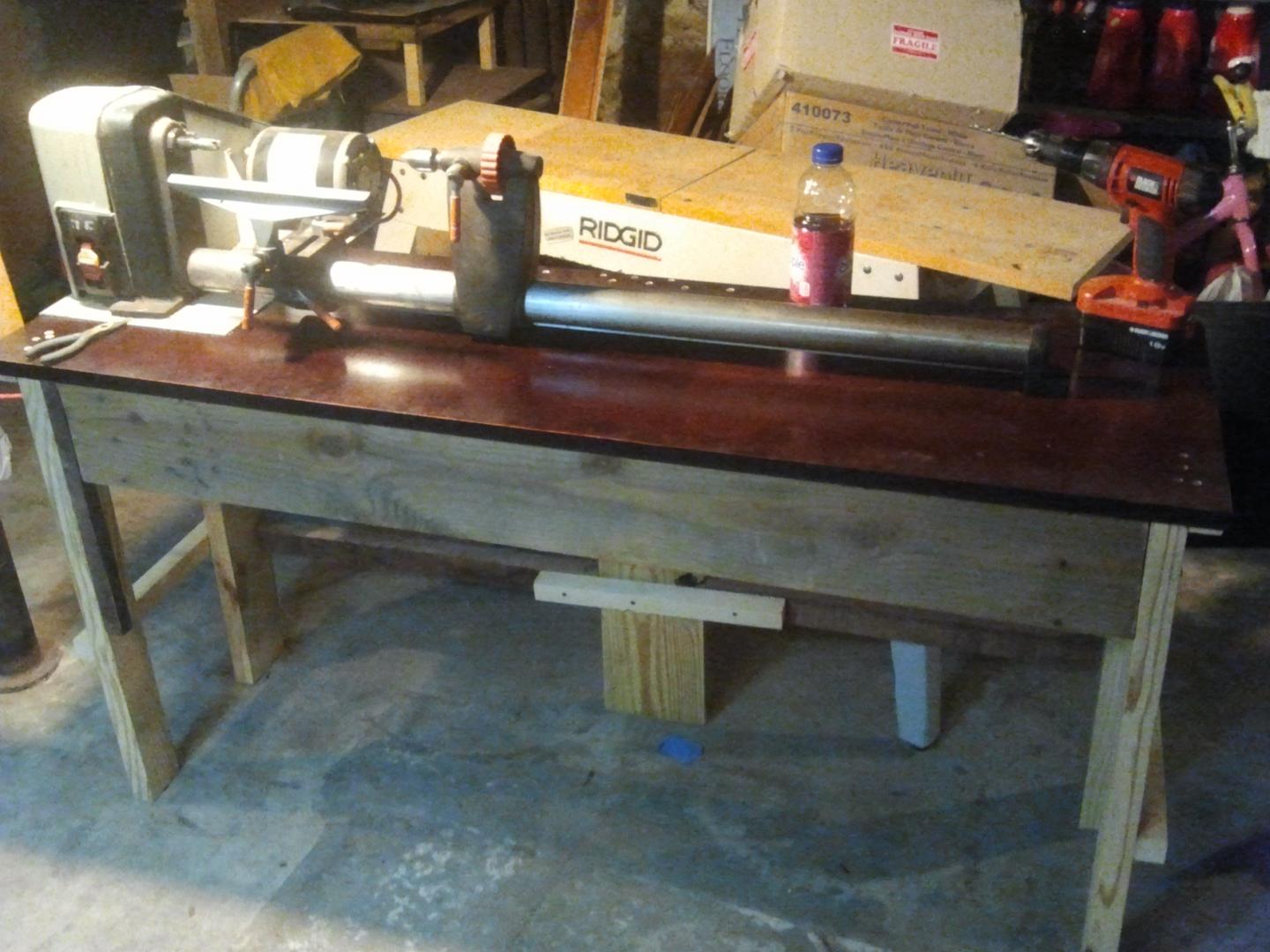 I took an old bathroom vanity from my mothers house and an old countertop from a kitchen I remodeled to make my lathe bench.