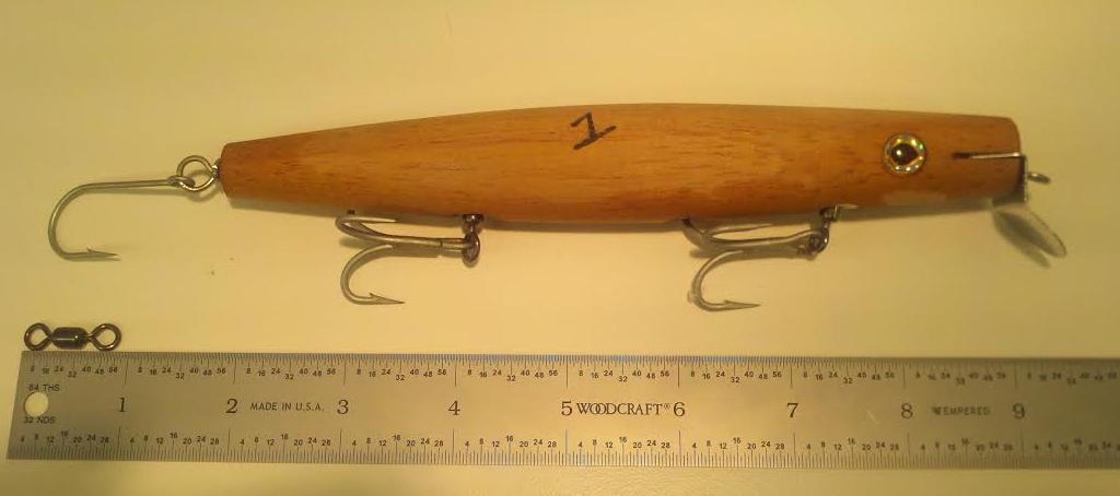 ...Next version 1 hook 3" back. Plug is 7" long. Added a medium salty surfster round lip. Swam w/action on top and gave nice movement lowering rod tip and pickup the speed. It is AYC. I will try pine or cedar for a strictly top water. Would this version swim at a crawl?