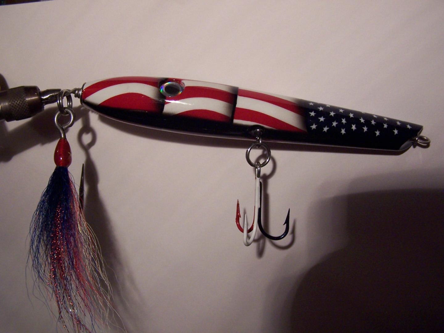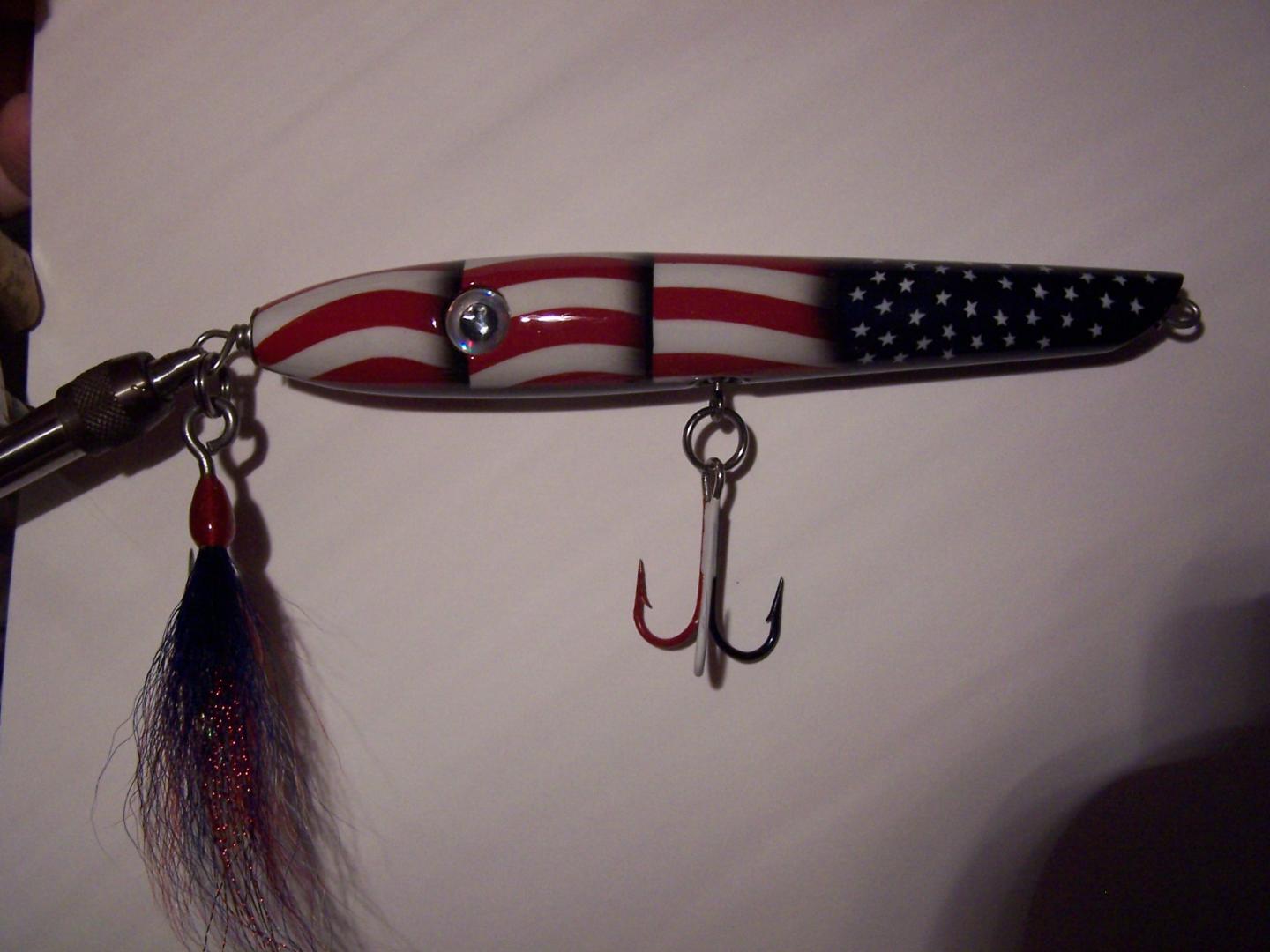 This pencil was turned in 2004 by Larry "Bigfish" Wentworth and painted by none other han Mike "Fishing Freak" Delzingo. I have been the caretaker of this beautiful plug since I won it in a raffle at a 2004 plug night at a Mass. Stripe Bass Meeting. Obviously it has tnever been swum, or should it be. It has been stored upstairs in my office since the night I brought it home. I have something special I want to buy this year and selling this plug will help me get there. I have a minimum I want for the plug and I wont part with it unless the bids, or a bid, reaches that point. It is an extraordinarily unique fishing lure, and looks every bit as good in person as it does in these pics. Just so that everyone knows I emailed the boss with my minimum sale price. I dont want anyone to think that price will keep changing. I dont expect to get what JR was offered for his flag Mac pikie he has, but halfway there would be nice. This sale/auction ends at midnight February 7, 2014. The plug will go to highest offer over the minimum acceptable price that I have told JR I would accept. Thats fair.