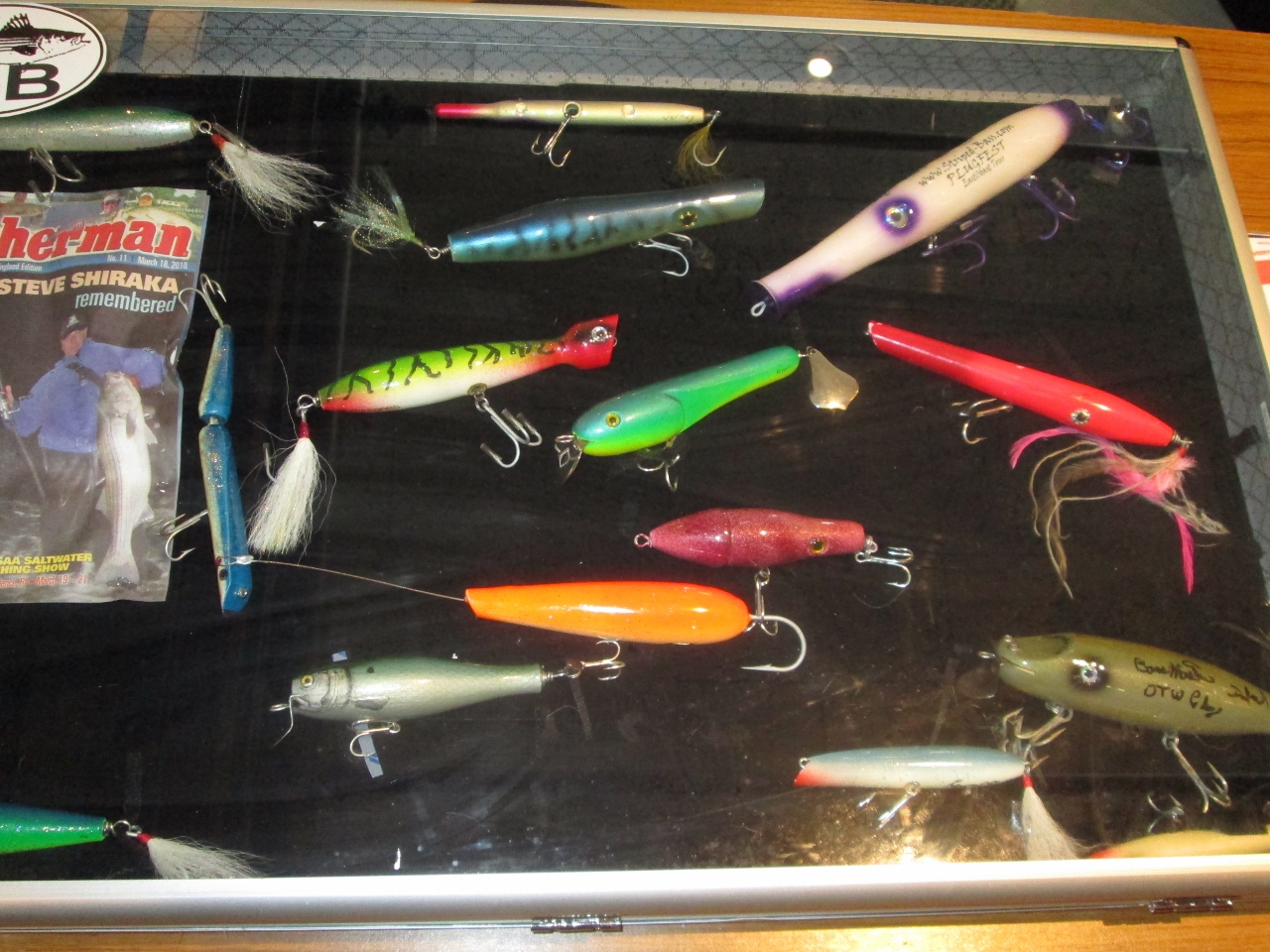 Highlight came at the end when some quiet 16yo kid was standing there drooling over a purple skinny donny. Said he fished 360 hrs at night in the canal last year (using his mother for transport, God bless her) and wanted to buy one to try there. I told him it was too unstable, he said he'd use it at slack. So I gave it to him. He pulled out a wallet to try and pay me and I told him no, just to take it and fish it. He stood there wide eyed when I had my best idea of the day………………………………I turned to Paul and told him to give the kid a plug…….and of course he did.