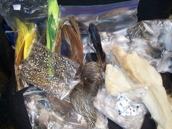Cleaning up getting ready for next season.Theirs, Deer Belly, Mallard belly, some Pheasant wings, More mallard, Deer hair Tail Ends, eyes, Jungle Cock around 100 Sorted sizes some Split, some not. can be yours $10.00 includes postage. first "Ill take it", has it. GOOD LUCK GOOD TYIN