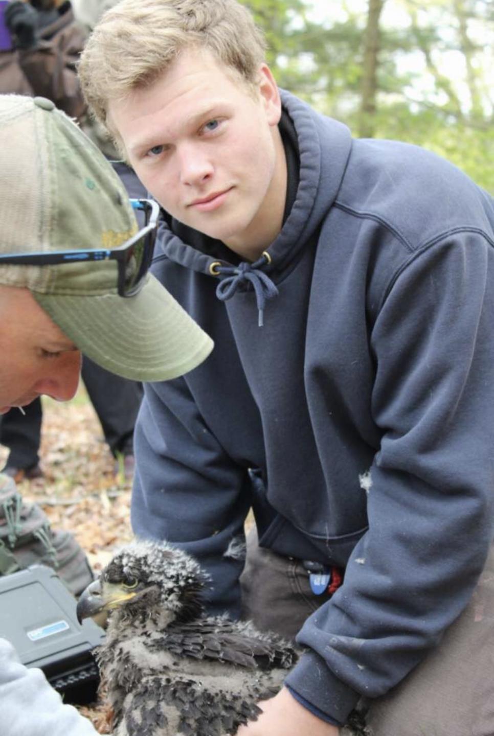 This week my son had a rare opportunity to work with Mass Wildlife at his school. He goes to Bristol County Agriculture High School, in the Natural Resource program, and they monitor the eagles nest at the school. Usually he is collecting data with the drone which had an inferred camera and can detect heat in the eggs and collect other vital data from high above the nest. A little over 5 weeks ago the one egg in the nest hatched. Its still too young to determine the sex of the bird. The banded it with a state and federal band, got a blood sample, weighed it (just over 7 pounds) and chipped it for tracking. He came home super excited! It was cool to see him so enthusiastic about what he had encountered. Great school for him, it fits him perfect. Next year is his senior year and he is looking at becoming a wildlife biologist working with animals or reptiles....as long as the school has a baseball team.LOL