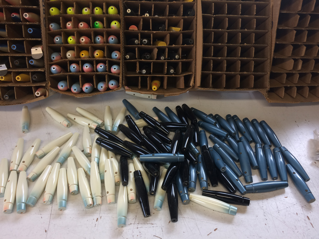 Sea Dogs, Sea Pups, Danny's, Large Swimmers, Diving Swimmers, Jr Swimmers, 2oz Darters, 3oz Darters. No Eels, hated making those damn things.