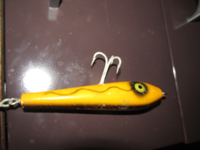 Then I bought a nice looking surface plug for $10 , more than I wanted ..but when I got home . with a glass you can read .South Bend Be Bop ........only two on e-bay for more money . to maybe I won,t fish it ,