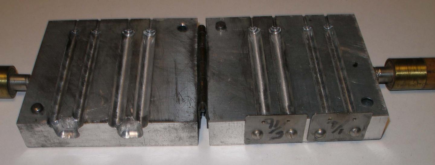 Thanks Bruce. I have been debating doing that for a while anyway. I've had enough practice doing wood ones so drilling should be pretty straight forward. On the one that sold on SOL there was a fixture attached to the top of the mold that would keep the wires for the through hole centered. That looked very interesting. I might try that as well. I wish I had Paul's experience and access to a machine shop but I think I can muddle through on this one OK.