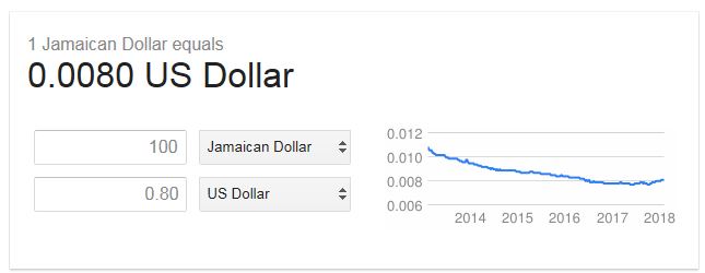 You do know that a $100 Jamaican is $0.80 American.