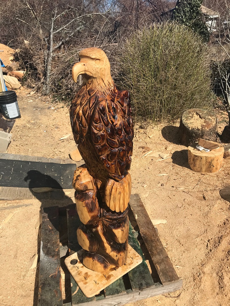 Finally the weather allowed me to finish and seal this latest eagle, eyes will be glued in next and then she is ready to paint.