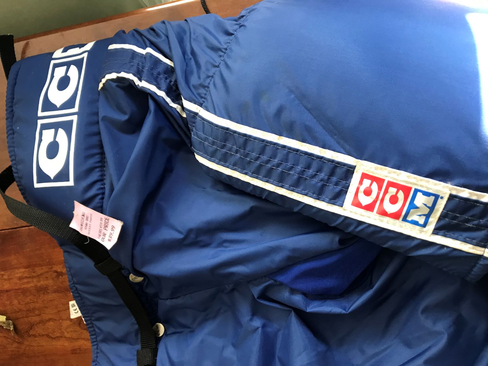 CCM large bleu hockey pants. new with tag. Molded pads for thigh, back and kidney $30