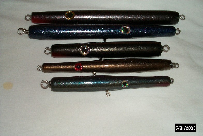 Heres some newly painted plugs, One is a Habs needle I repainted because the fish killed it last year. I wish the picture did these justice the colors are cool but dont show well in the photo.