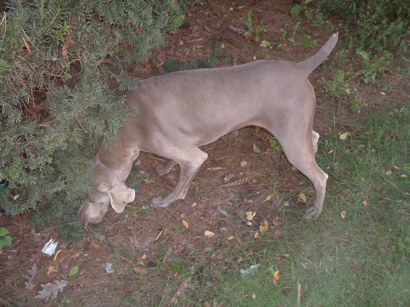 She got sprayed by a skunk last night! Yuck! Poor thing it was awful, it happens about once or twice a year, but I always seem to forget how terrible the skunk smell is ... Dawn dish detergent worked wonders on the smell though.