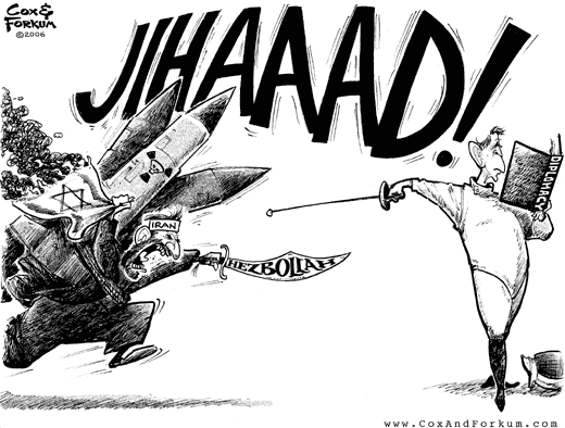 America finds itself at war with radical Islam, a two-churched monster: Sunni al-Qaeda is now being challenged by Shiite Iran for primacy in its epic confrontation with the infidel West. With al-Qaeda in decline, Iran is on the march. It is intervening through proxies throughout the Arab world -- Hezbollah in Lebanon, Hamas in Palestine, Moqtada al-Sadr's Mahdi Army in Iraq -- to subvert modernizing, Western-oriented Arab governments and bring these territories under Iranian hegemony. Its nuclear ambitions would secure these advances and give it an overwhelming preponderance of power over the Arabs and an absolute deterrent against serious counteractions by the United States, Israel or any other rival.