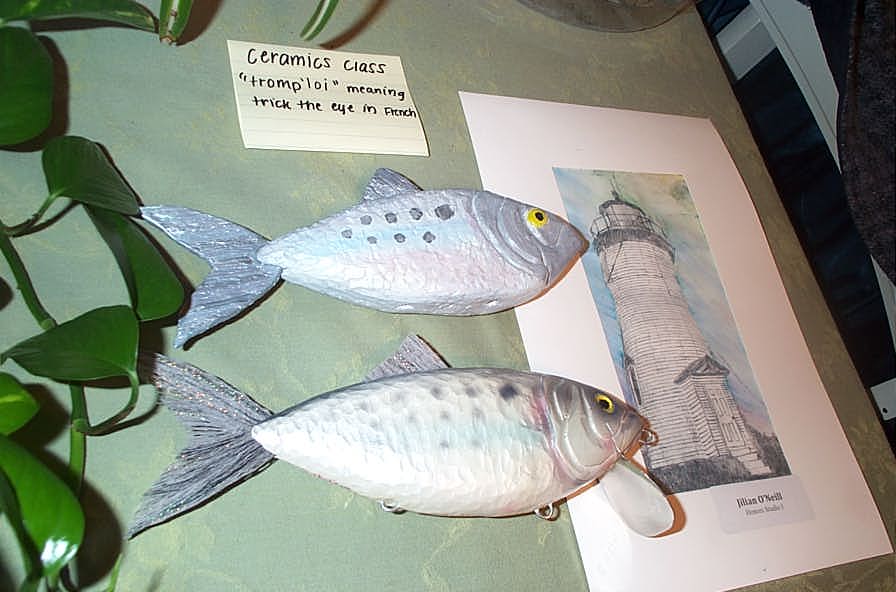 Wow... those tail fins look real... she has a future in ceramics .... sell her stuff to the summer people in Edgartown for $$$