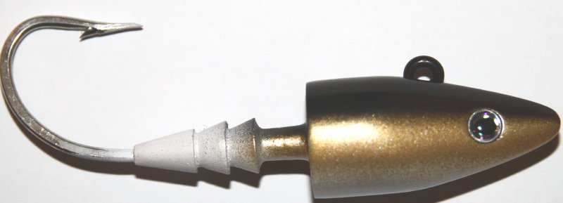 SlugGo type soft plastics. The jigs will come in 2,3,4 & 4.5 oz . The nose of the jigs are oval with round body and the 3 ring collar will hold the rubber on tight and reduce it from slipping back.They come with Mustad 34184 8/0 hooks. They will also come painted or unpainted .We will also be offering a Tuna grade series soon.