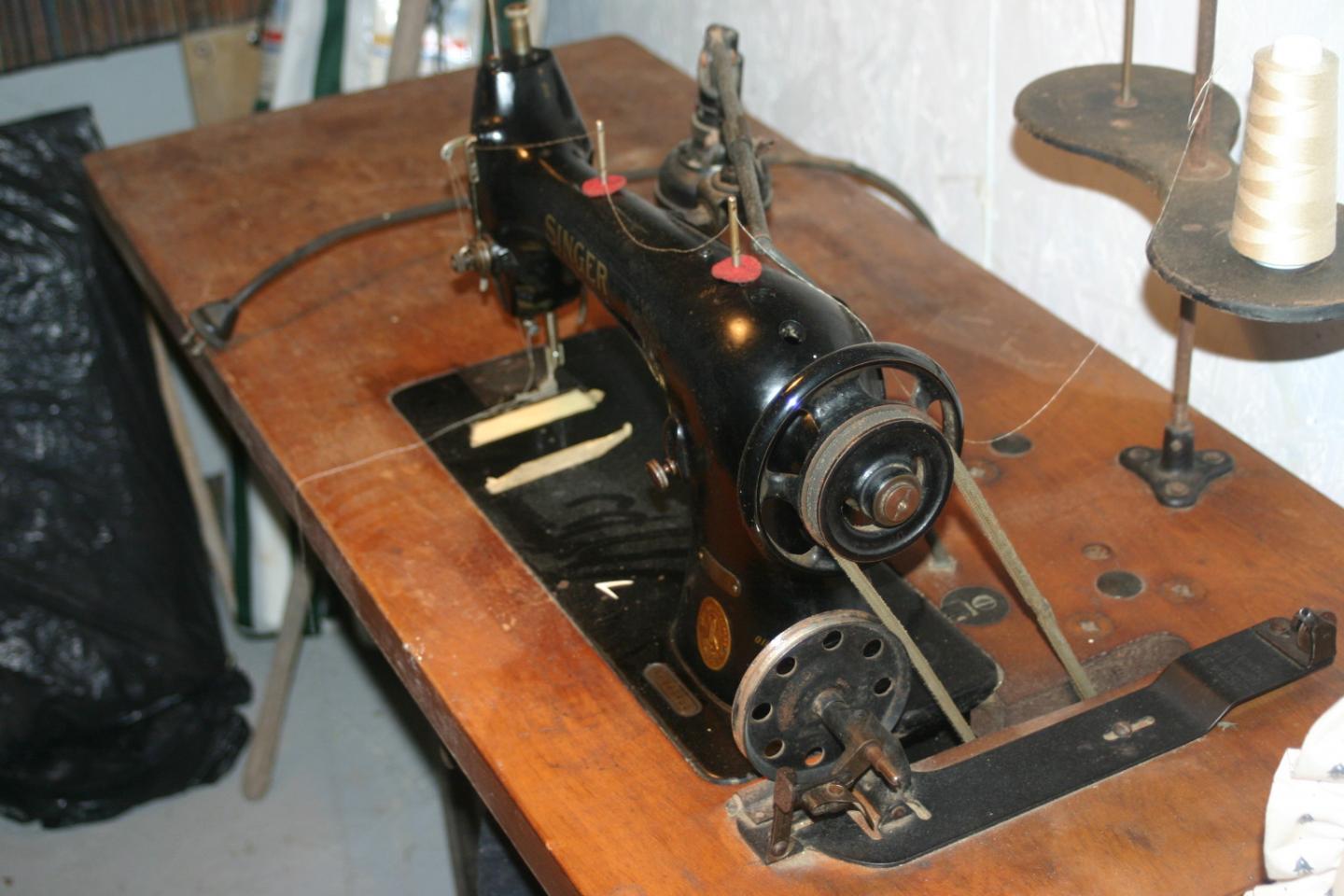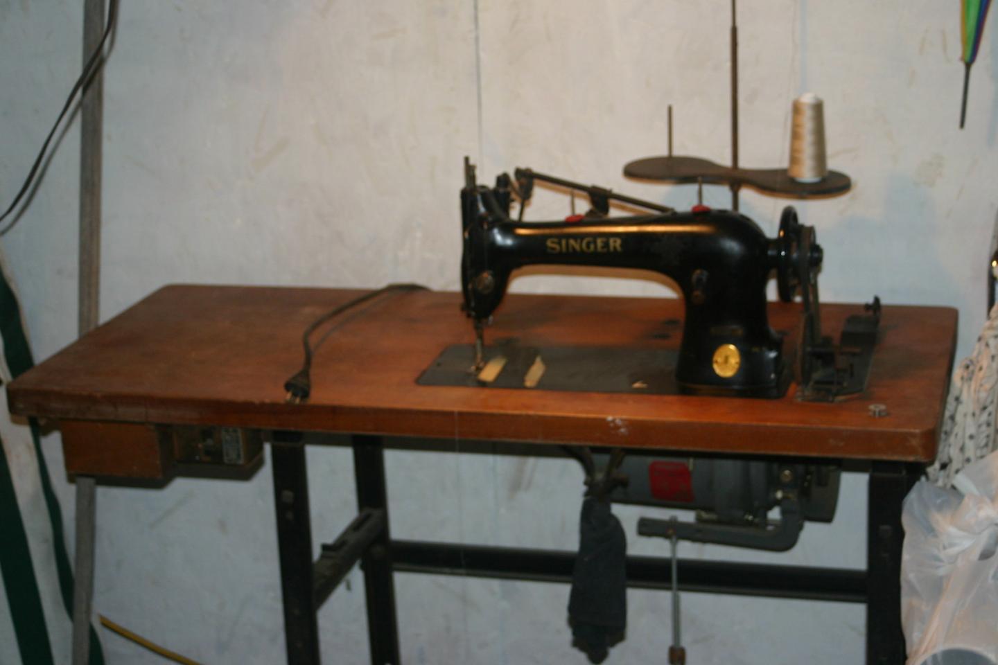 Singer taylors sewing machine. It's pretty old but works fine, actually still being used today. It can sew cloth, canvas, leather, etc. Wood table with side drawer, also has a light. Comes with several different feet for doing different stitches. $200 or partial trade.