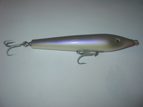 I broke mine out of its glass case and made a couple casts just to see how it swims, but then quickly washed it off in FW, dried it and returned it to its place of honor.  It looks kewl in the water...1/3 needlefish 1/3 spook and 1/3 jerkbait.