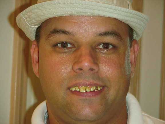 I have a set of Uncle Bucks buck teeth. They are really over the top. Whne I have a new charter I will put them in my mouth and spray spit all over the place. You should see thier faces. All of the sudden they start talking slow and trying to look at my teeth without looking to obvious. It is funny as hell to see them trying to sneak a glance at my teeth. You should see the relief when I take them out at lunch time. It is a hoot.